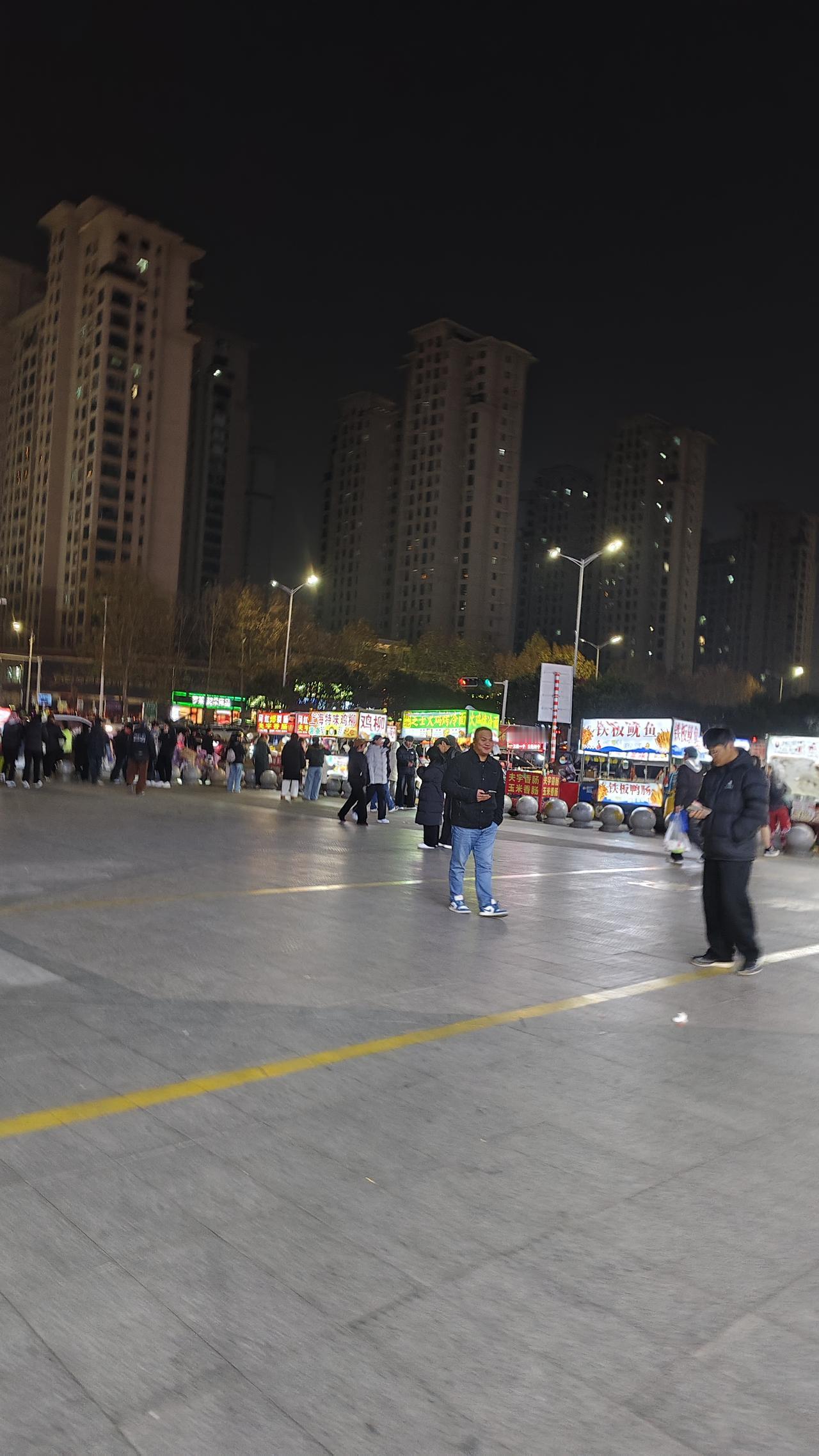城市夜市的日常模样 夜晚的城市广场上,藏着最鲜活的市井气息。高楼在夜色里立着,路灯把地面照得亮堂,广场上不算拥挤,行人慢悠悠走着,偶尔在小吃摊前停下脚步。 各色小吃车排开,灯牌亮着彩光,摊主们忙着招呼客人,炸串、饮品的香气飘在空气里,是普通夜市该有的热闹。 没有刻意的喧嚣,也没有冷清的寂寥,就是城市里再平常不过的夜晚场景。 人们在这里走走停停,或是买份小吃边走边吃,或是和同行的人闲聊,这样的画面,不过是都市生活里一个普通的夜晚片段,平淡却也透着生活的温度。夜市 夜市街景 夜间小吃街