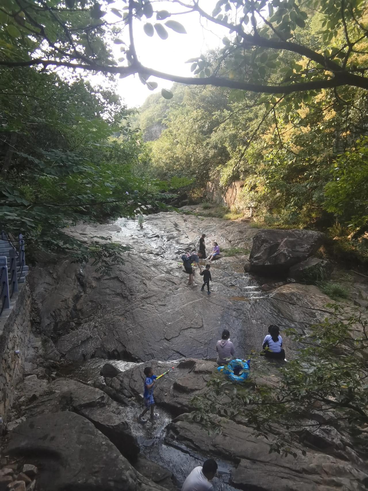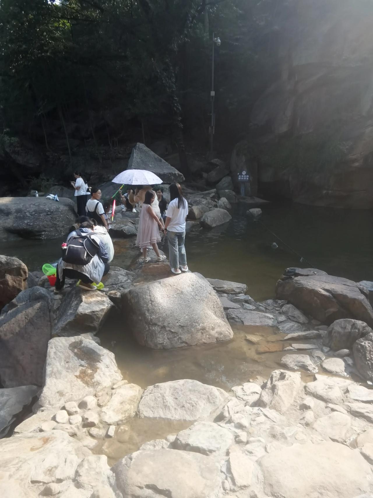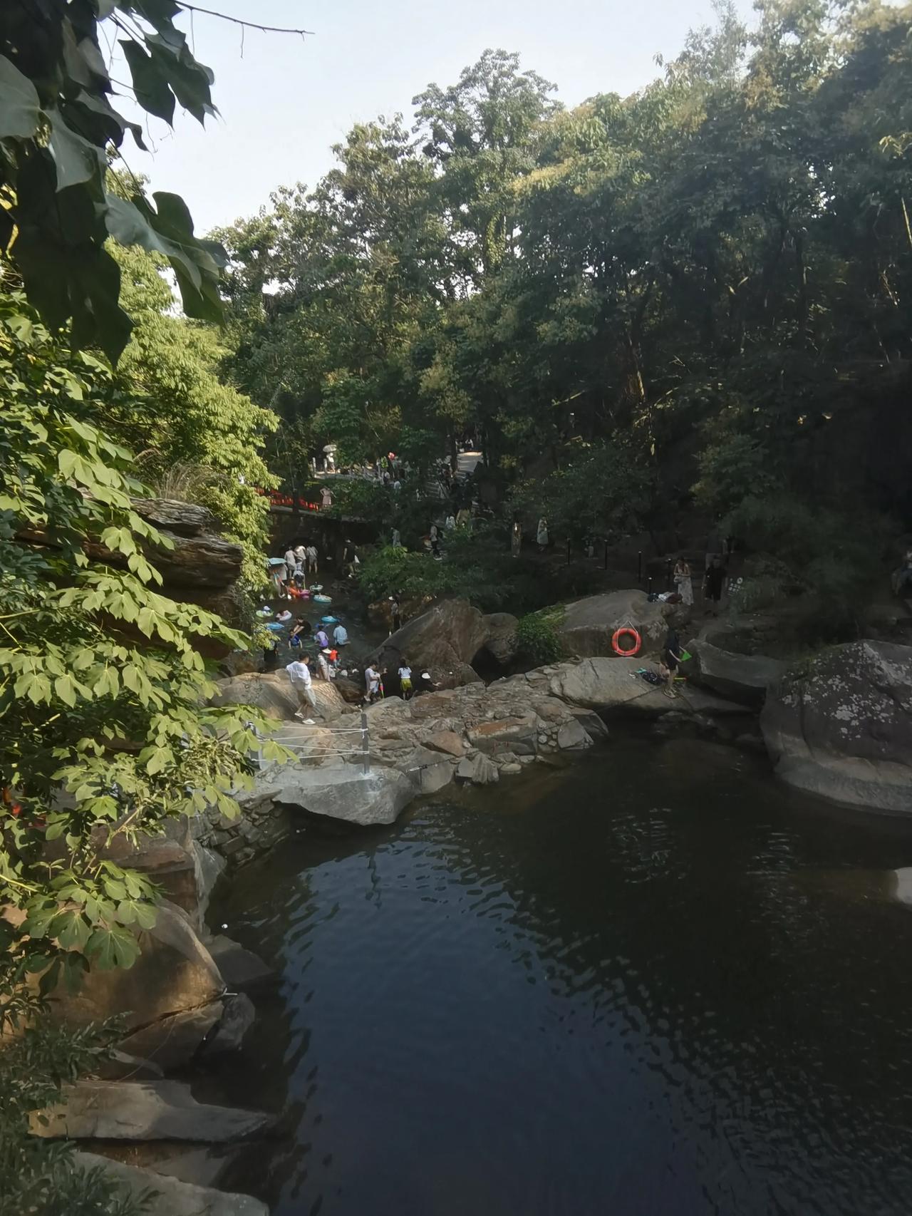 游不够的渔湾 七月末,我和老伴在二儿子陪同下来江苏连云港游玩,在出发前做旅游攻略时就深入了解到了渔湾这个景点,并对此发生兴趣,决定去这打卡并作为深度游,到此一游后,深感不虚此行,大开眼界了长知识了,收获满满。 渔湾,系由三重叠加的瀑布形成的台阶式的积水潭,也称三龙潭,即老龙潭、二龙潭和三龙潭瀑布。尤其是雨后的瀑布更为壮观,峡谷幽径、瀑布小溪相连,为此被誉为江苏九寨沟之称。 渔湾,是以瀑布、峭壁、怪石叠化而成的自然景观,可谓美不胜收。因其自然纯净、淳朴、险峰迭加,也有人称其为"小张家界"的。 渔湾三龙潭系由三重叠加瀑布形成的积水潭,常年上下川流不息,所以潭水请澈见底,凉爽宜人,这里也就成了小孩子的乐园、嬉戏玩要的天堂,每到炎炎夏日到来,许许多多小孩子都乞求爸爸妈妈带他们放飞自己尽情讽玩,外地也有人慕名而来,赐给孩子享受大自然的机会。 三个龙潭每天都满满的小孩子,在水中游泳、打水枪、相互泼水,玩出了童趣童乐,真正成为儿童王国的小主人。大人们有的也投入其中,和小孩子一起打闹,时不时传来欢声笑语,增添不少欢乐气氛。 玩了好久了,还不情愿离开,有的还要求爸爸妈妈做出下次再游的承诺,大人不得不勉强点头答应,他人见了脸上也不禁露出笑容。