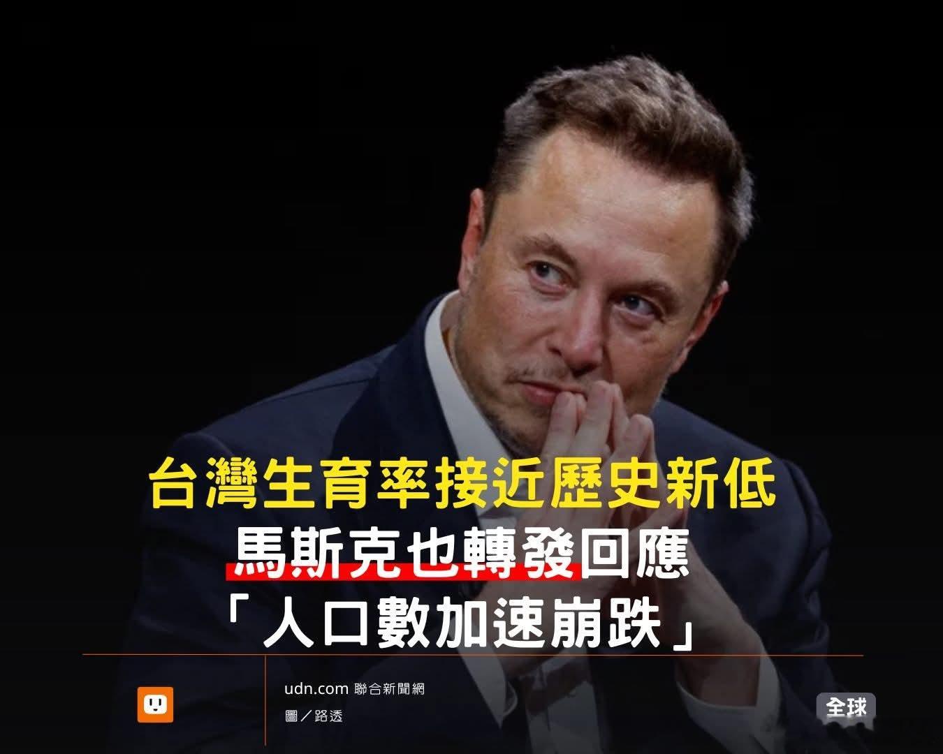 马斯克担心台湾出生率持续暴跌会人口崩塌崩塌就崩塌吧,一个省人口减少,可以别的人移居过去,这有什么。毕竟那个省政府横征暴敛,经常浮尸,GDP造假,欺上瞒下,普通人过不下去只能少生点。台湾最美风景是人全球生育率台湾排倒数第一
