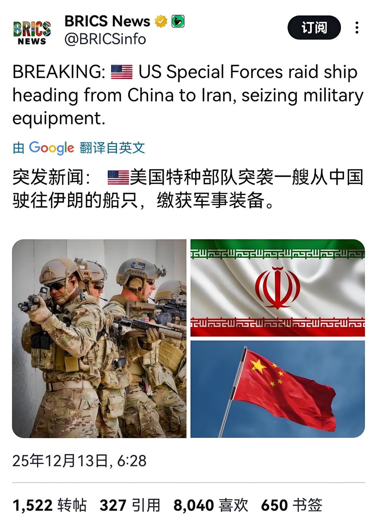 美国宣称在印度洋拦截中国籍货船 指其载有涉伊朗武器部件。 据多家外媒报道,多名美国官员近日向媒体披露,美国特种作战部队于上月在广阔的印度洋海域采取了一次突袭行动。目标是一艘据称从中国港口出发、驶向伊朗的货船。 根据这些匿名美国官员的说法,此次突袭由美国海军特种作战小组执行。他们声称在行动中登船检查,并截获了一批货物。其中一名官员明确表示,美方认为这批货物包含“可能用于伊朗常规武器的部件”。 美方官员进一步透露,被截获的货物已被当局“销毁”。他们强调,此次行动基于美方掌握的所谓情报,旨在阻止敏感物资流入伊朗。然而,美方并未公开具体的情报细节,也未提供关于被截货物性质的确凿公开证据。 美国此举,是典型的霸权主义和单边行径,严重违反国际法和国际关系基本准则,粗暴侵犯了中国船只的航行自由与合法权益。其单方面依据国内法对第三国商船采取强制措施,更是对国际法治的公然践踏。所谓“军事物资”的指控,迄今未见美方拿出任何令人信服的证据,其真实目的令人高度质疑。 中国政府已就此向美方提出严正交涉,要求美方立即停止此类错误行径,给中方一个负责任的交代。