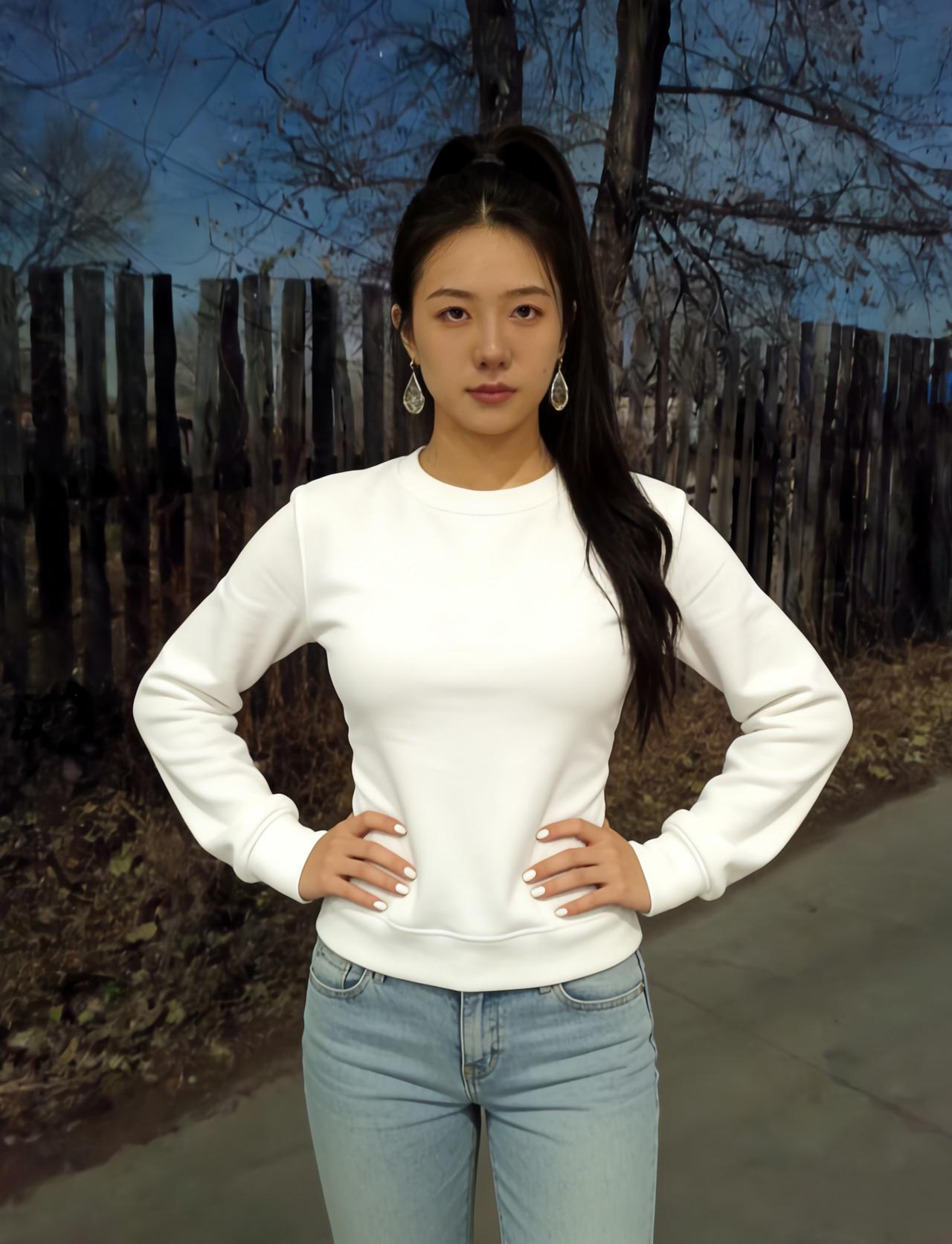 芦花万顷舞霜风,佳人独立秋水东。 素缕针织凝雪色,青衿布裤漾波融。 眉弯浅带秋云