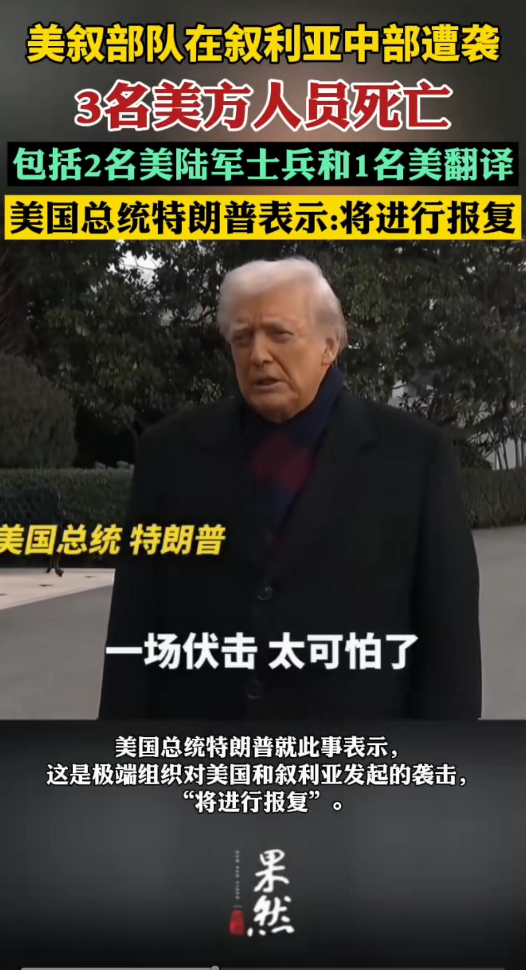 最新消息,美国在叙利亚的士兵遭到袭击,两名陆军士兵死亡和一名美国翻译。 特朗普直