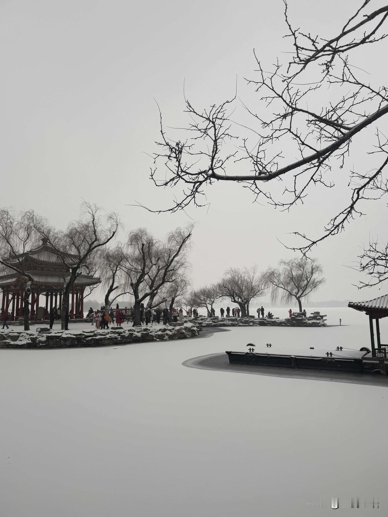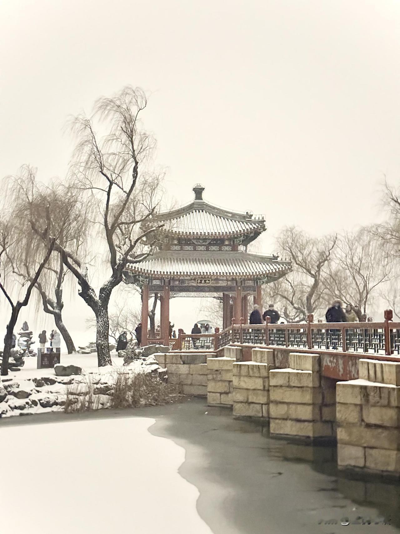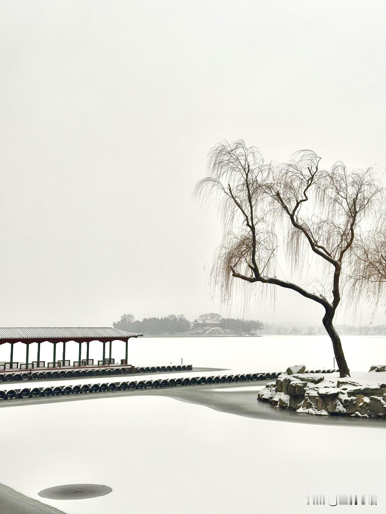这一刻 理解了中国水墨山水画! 老祖宗严选,果然没错。 北京初雪,颐和园美成水墨山水画! 亲眼见到才懂什么叫仙境, 雪盖满昆明湖,天地白茫茫一片, 没有喧嚣人群,没有多余色彩, 走进来就像闯进水墨画里,每一帧都绝了。 这冬日限定的浪漫, 真的值得亲自奔赴, 这一刻,山水画的意义满分! 颐和园