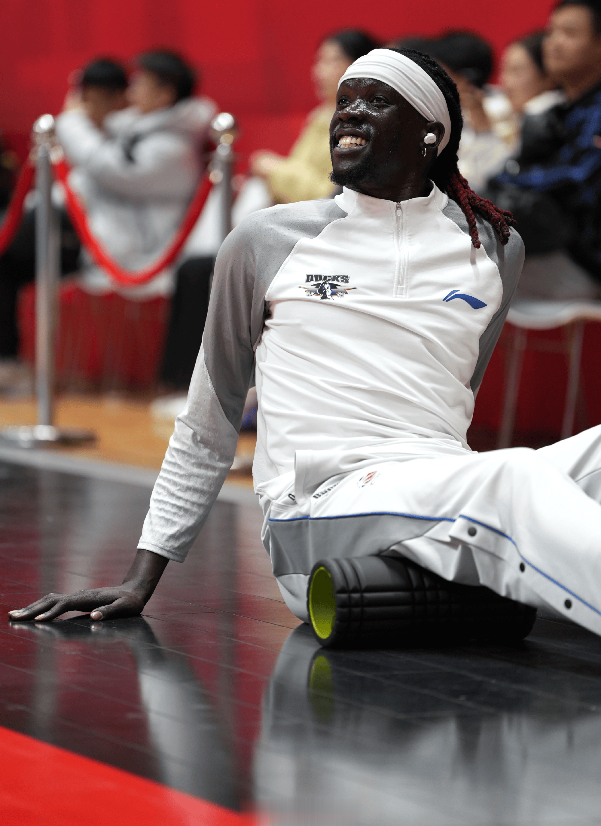 其实踩场、热身投篮都挺准的,可一上场,现在非要往里找对抗,然后就摔,不知道怎么想的?有些球投就完了,简单点。