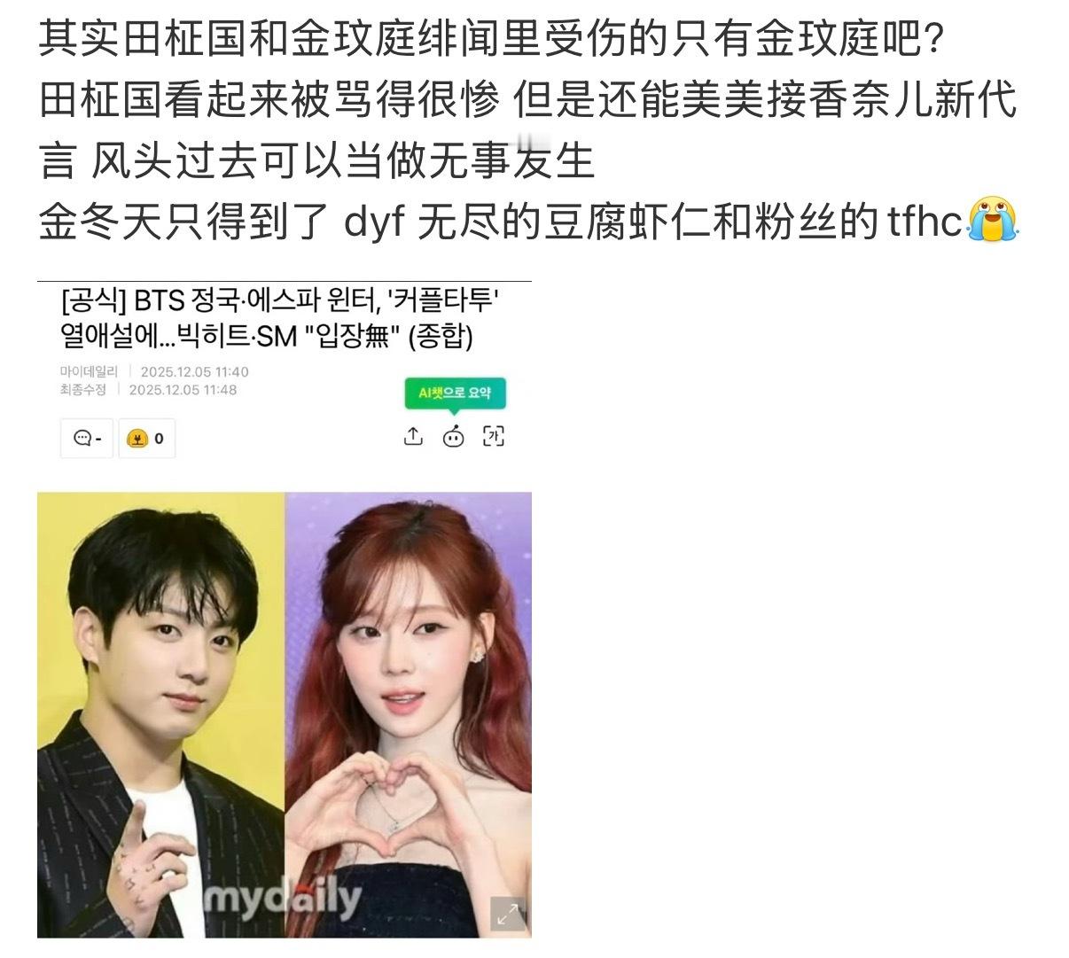 田柾国金玟庭疑似恋情曝光后 男方先是拿下香奈儿高奢代言紧接着又有ELLE 开年刊推封 真就升官发财…反观女方的韩国站子和咖喱狗娃妈一个已注销一个已锁推 粉丝也纷纷 tfhc 真就燃烧自己照亮他人了金玟庭 田柾国金玟庭著名大粉销号田柾国登ELLE开年首封9版封面