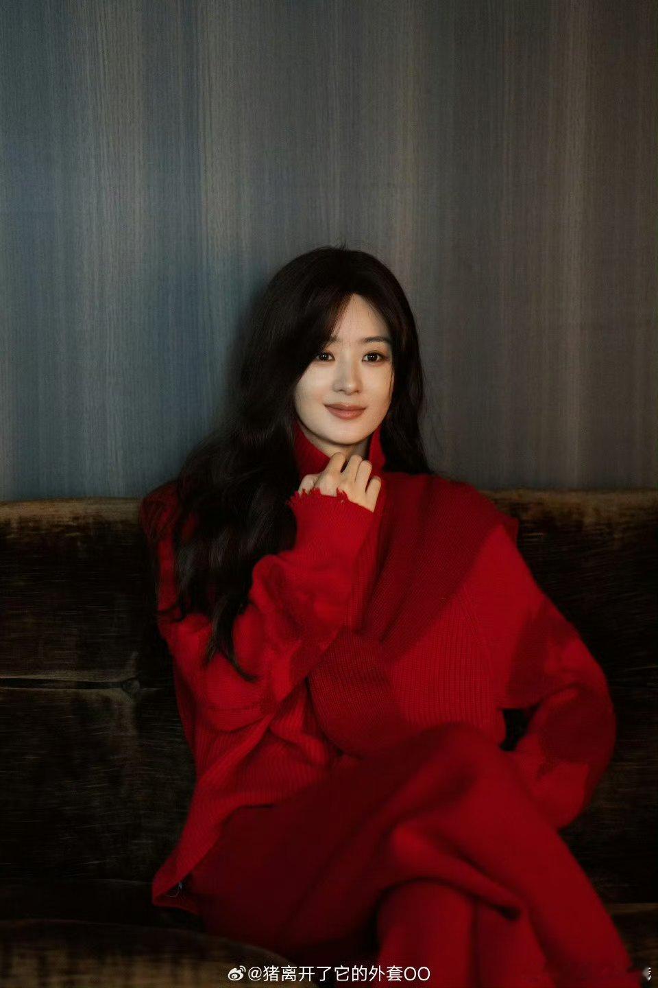 赵丽颖最新红色毛衣营业图,温柔又知性的气质!! 这个红色好喜庆