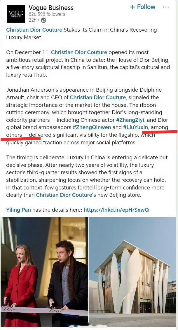 Dior北京新店开业剪彩,邓为站位靠中间粉丝狂欢,结果Dior外网总部通稿只提了