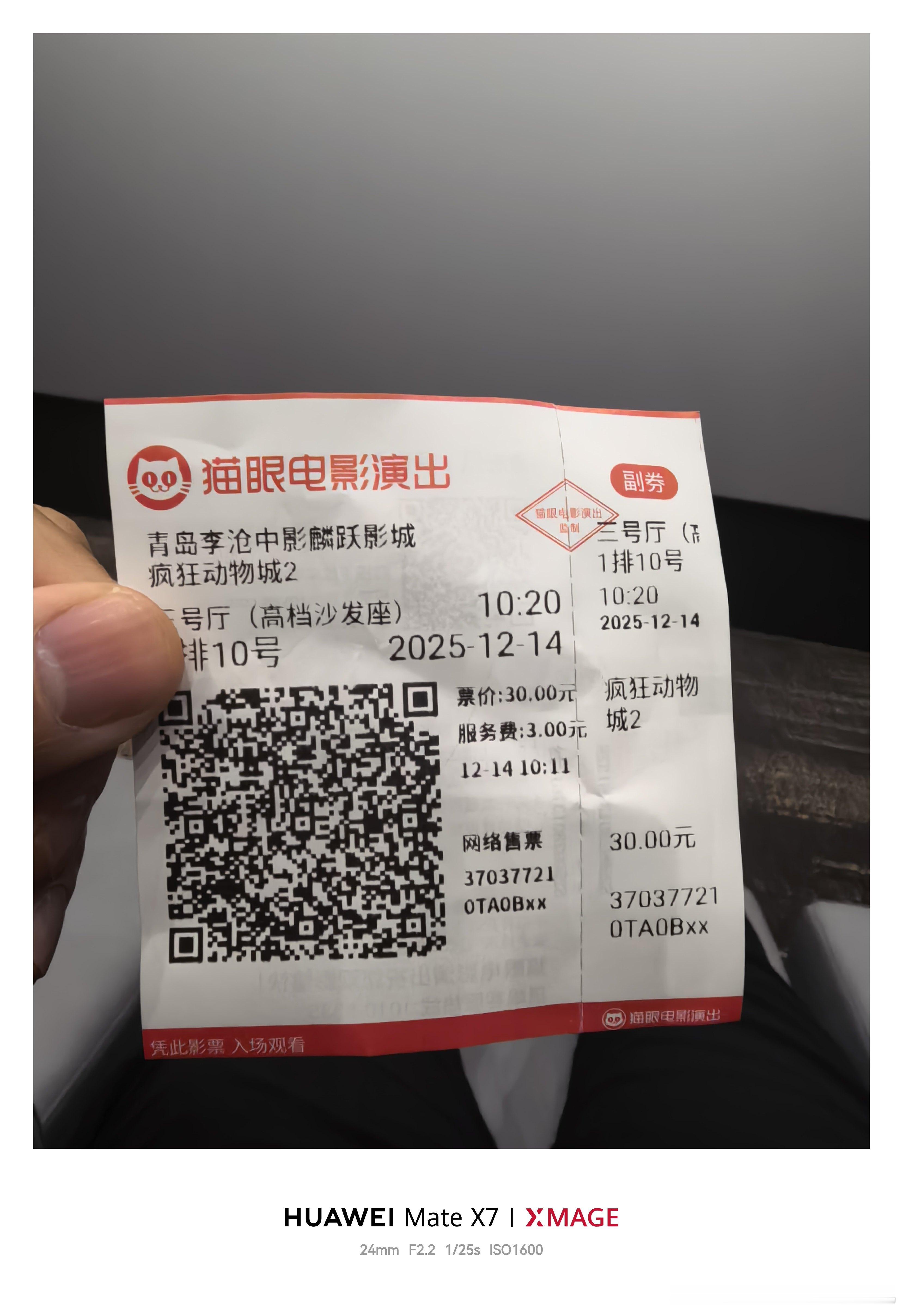 陪娃来看个电影,非要坐第一排可靠的mate华为matex7