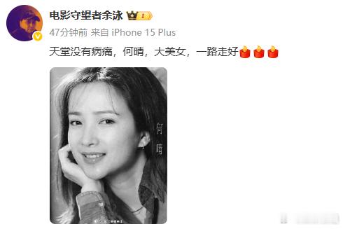 电影守望者余泳悼念何晴这个消息太突然演遍四大名著的何晴去世了,电影守望者余泳发文悼念何晴:天堂没有病痛,何晴,大美女,一路走好 致敬,曾经熟悉的表演艺术家!