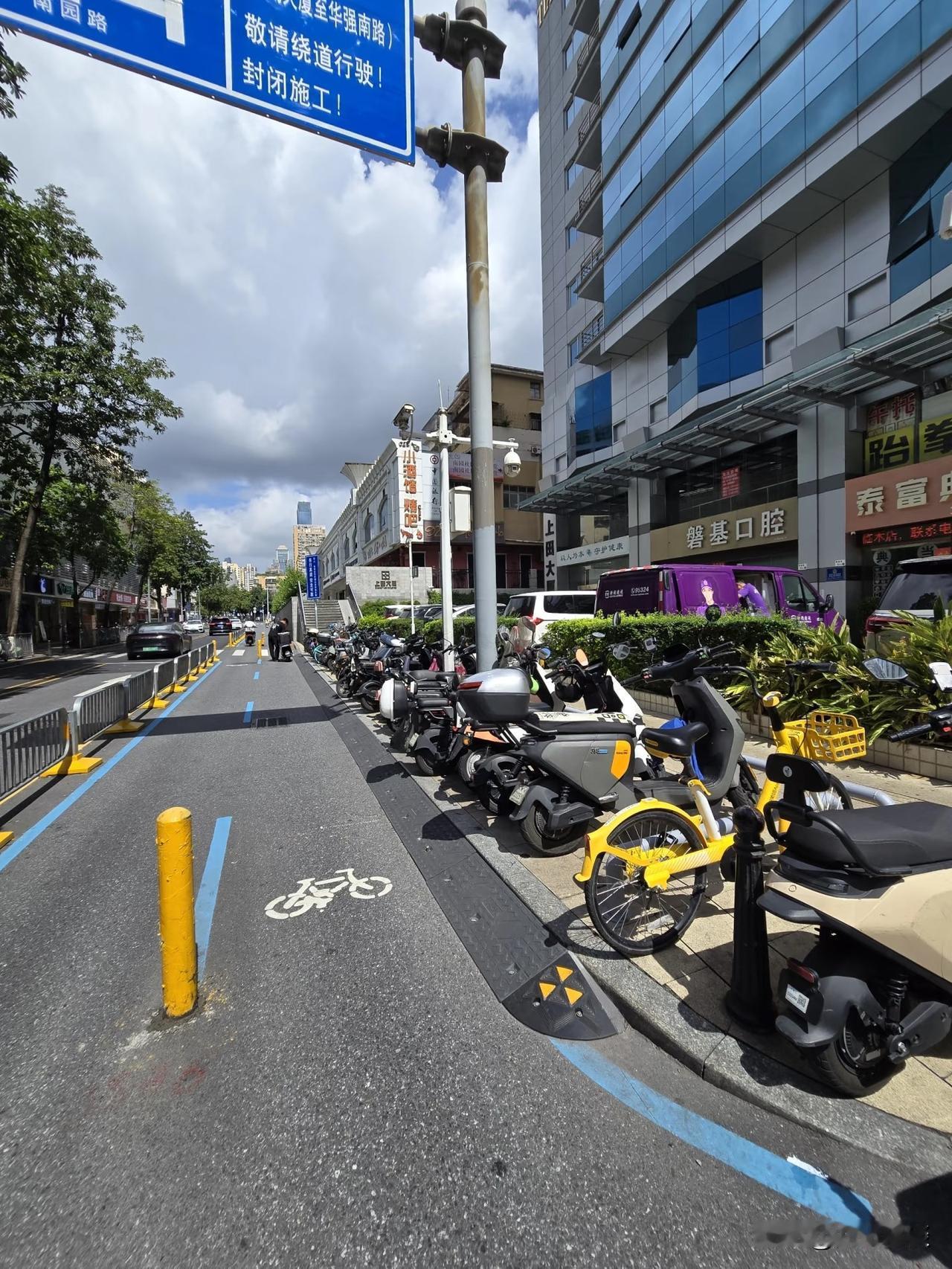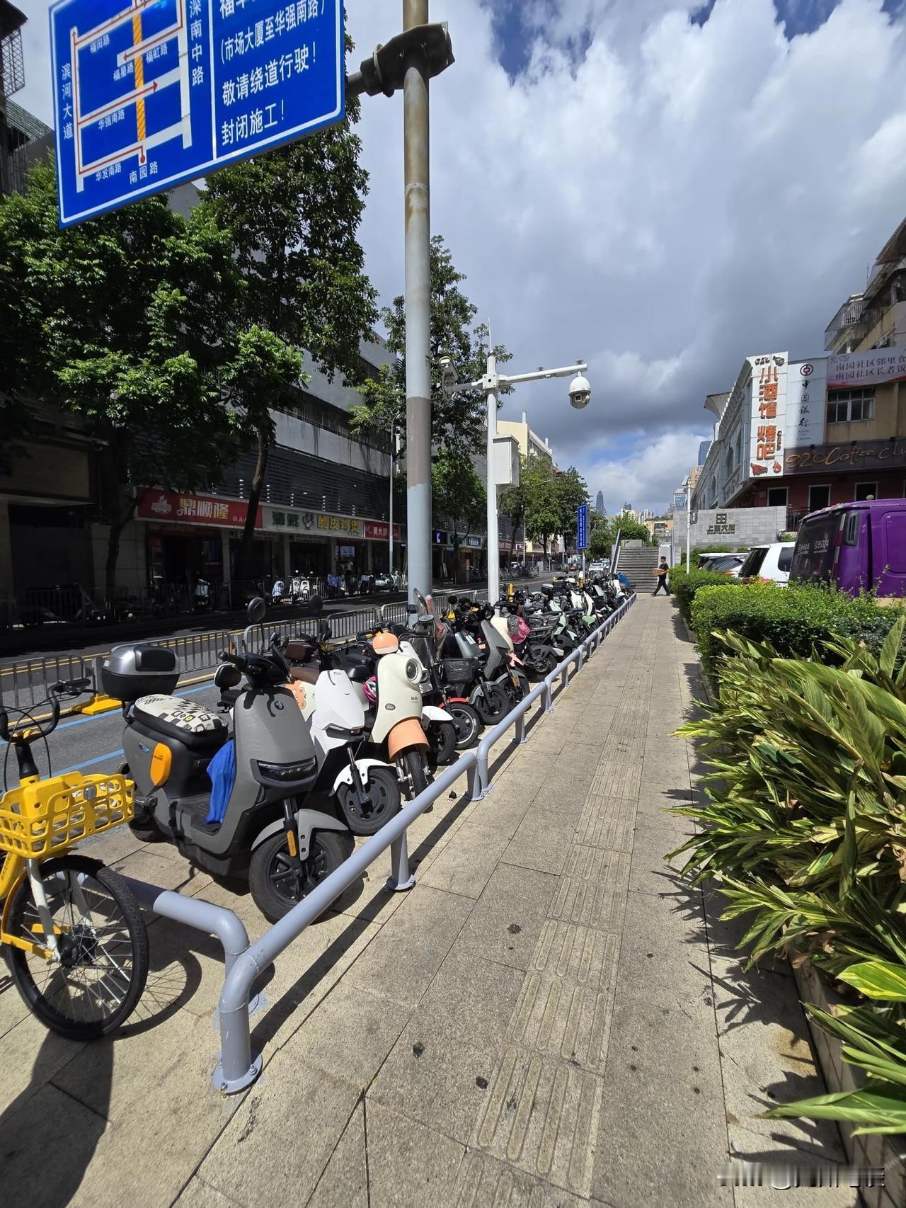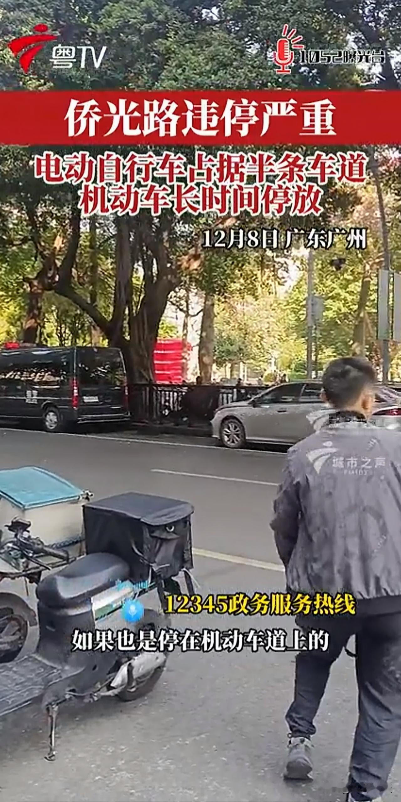 广州一核心区域重点道路违停严重,市民吐槽通行困难,机动车违停占据一条车道,电动车违停占据半条车道。 外卖骑手建议去掉机动车道与人行道之间的栏杆,减少违停,改善拥堵现象。 那么,广州人行道与马路之间的栏杆有必要存在吗? 究竟是好处多,还是坏处多呢? 广州大部分马路与人行道之间都设置了栏杆,导致非机动车只能从人行道两端上人行道停车、充电,外卖取餐等,造成人行道电动车不断。 或许拆掉栏杆,像深圳那样改造一下,可以好很多,至少可以减少人行道上的电动车,对行人来说,是好事,不用时时刻刻担心被电鸡撞到。