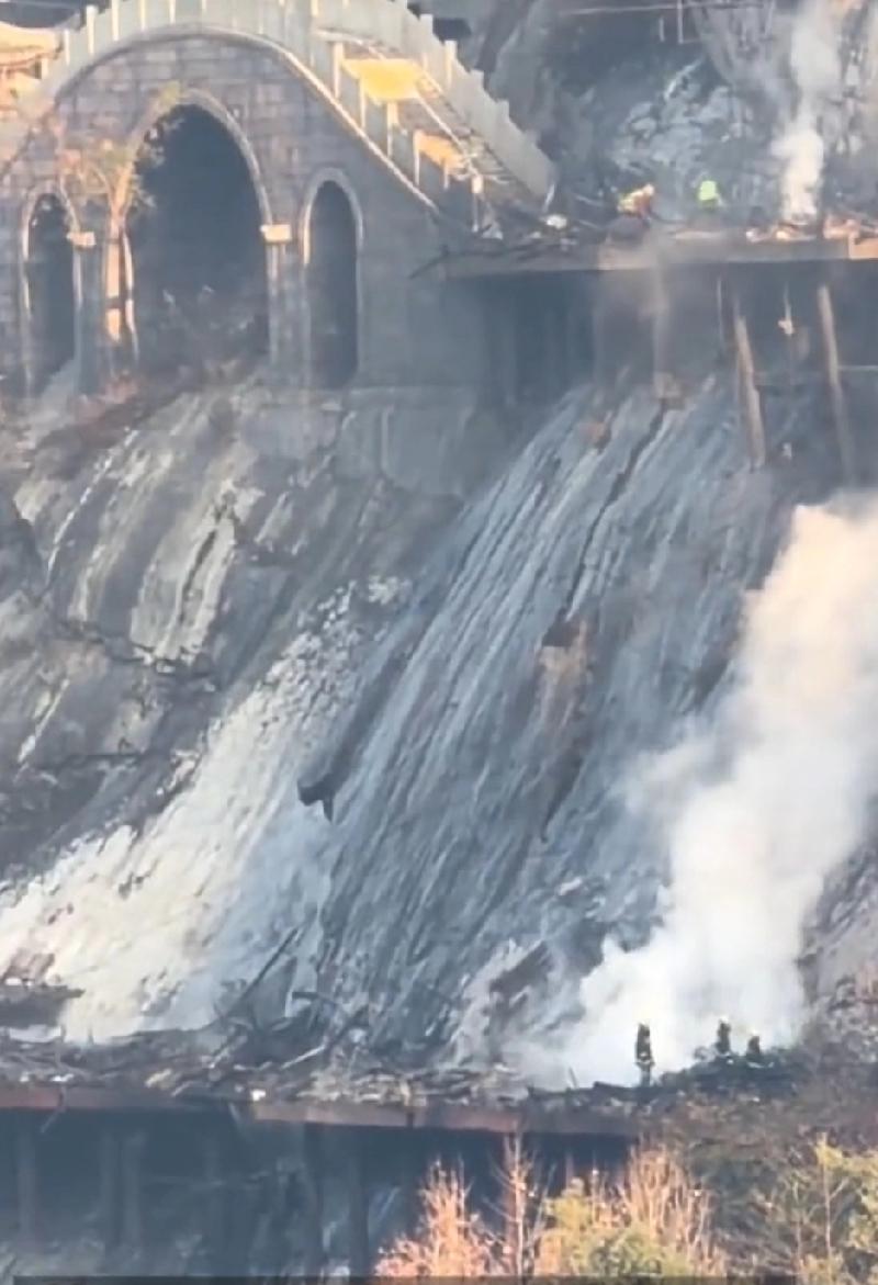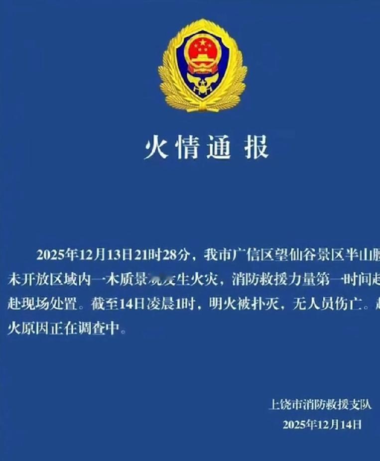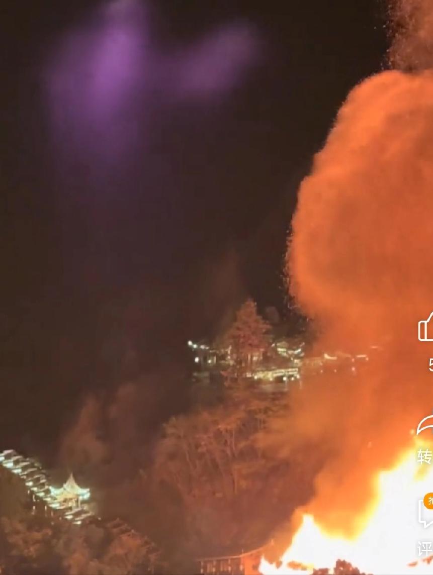 江西望仙谷发生火灾 12月13日21时,江西上饶市广信区望仙谷景区半山腰未开放区域内,一木质景观发生火灾,4小时后明火被扑灭,无人员伤亡。望仙谷我到过,还发表过文章,前几天还有人发望仙谷灯光视频,注文:这里不是日本,美得像仙境呢。一开始看到这则失火消息我吓得不轻,以为是挂在悬崖上的建筑起火,太可惜了。还好只是有待开放的木质建筑。没有开放应该更好管理,为什么着火一开始就没发现呢?烧成这样。晚上10点起火,应该有人值班的,原因得查清楚,这次损失也是不小的。
