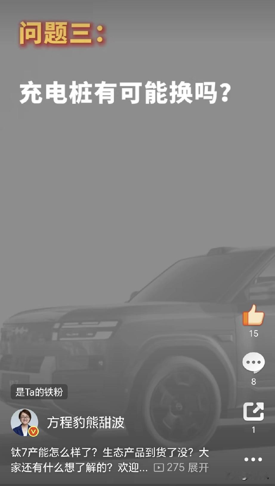 好消息,方程豹的充电桩有希望换回原版了[笑哭] 方程豹确实不当鸵鸟,消费者的合理诉求一直在听[笑哭] 产能的话这个月破三万没问题。 运输给力的话交付有可能摸3.5万! 目前店端反馈订单还是充足的。就算现在一个新增订单也没有,还能支撑交付两个月。 一月份因为会恢复国补,可能迎来年前提车小高峰。 工作一年开一个这么大的越野车回老家也有面子。 你让村里人猜都往三四十万以上猜[笑哭]方程豹越野