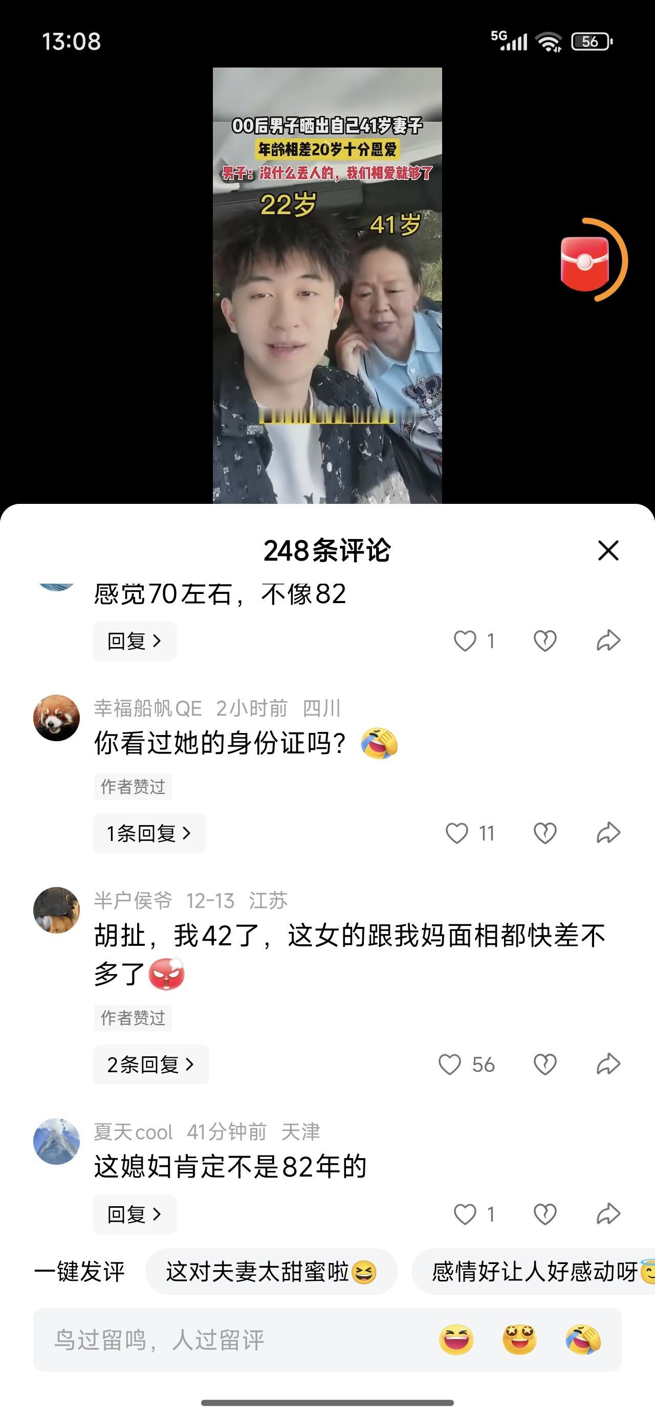 这家伙是一点苦也不想吃啊!这女的有41岁?周二十岁吗?再说了82年也不止41吧! 这样的能不能不让他出现?传递的什么价值观?才22岁就啃老了?一副懵懵的样子,被吸的油尽灯枯了? 那个小任任人家肯定伙食好啊!能补回来。你也能吗?[捂脸]