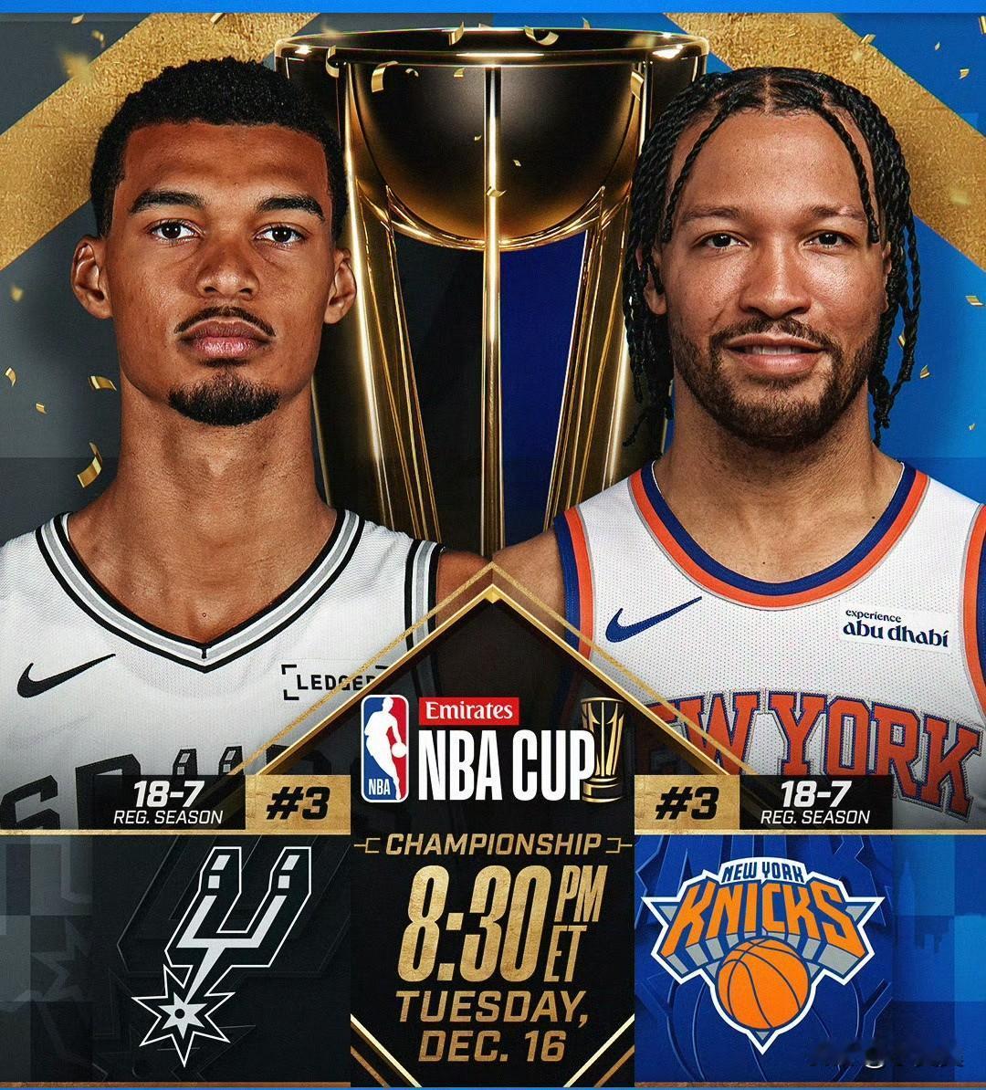 马刺和尼克斯争夺NBA杯冠军: 冠军队每人共69万美元奖金,亚军队每人共37.1万美元奖金(双向合同球员获得50%) ​​​ 马刺 尼克斯