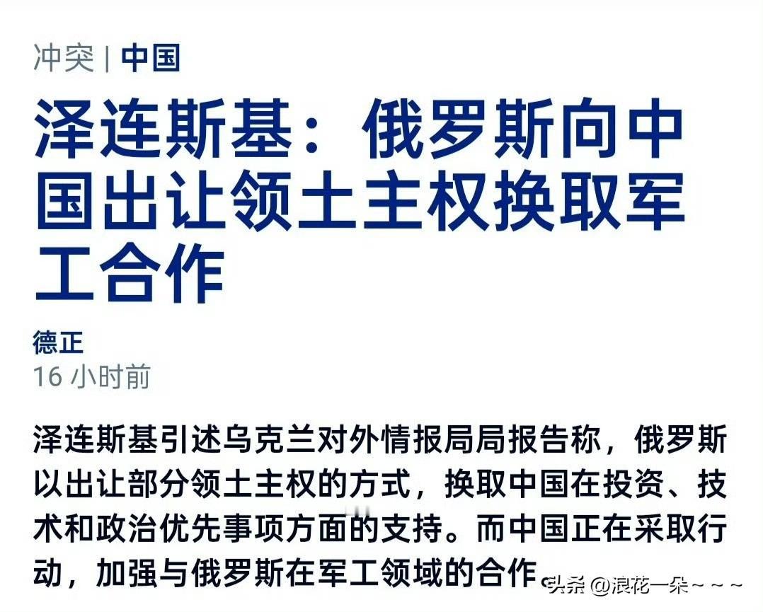 哦豁!有这等好事? 泽连斯基这是在搞虚假宣传,转移视线吧?动不动就跳出来拿中国说事,这是习惯性错误,得改![捂脸] 现在外国的情报机构有点乱,虚虚假假,真真实实,搞不清楚,有时候真的连一个标点符号都不能信,你们说,泽连斯基说的这一段有可能吗?