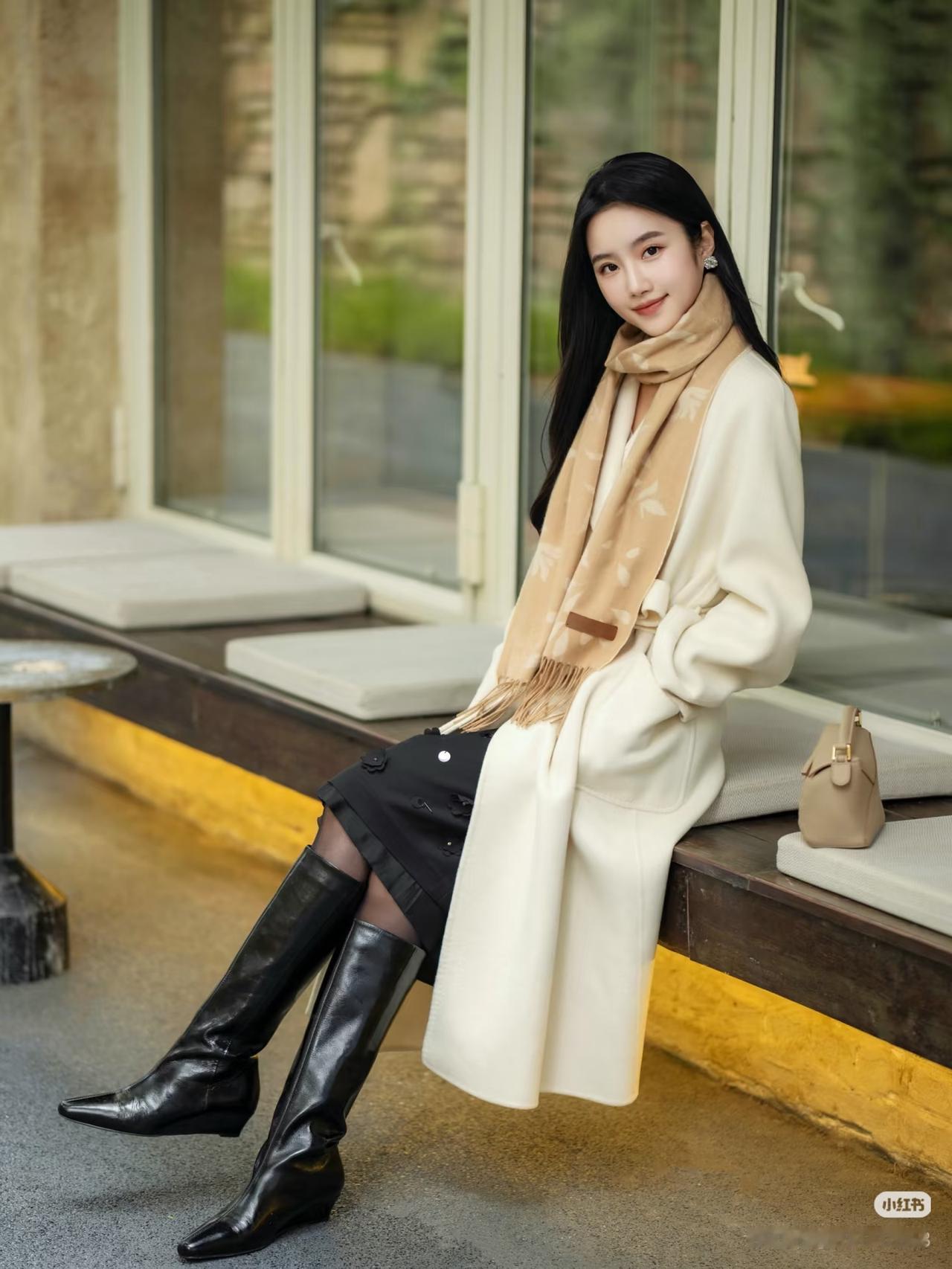 优雅气质,浅驼色毛衣搭配长裙,简约时尚。