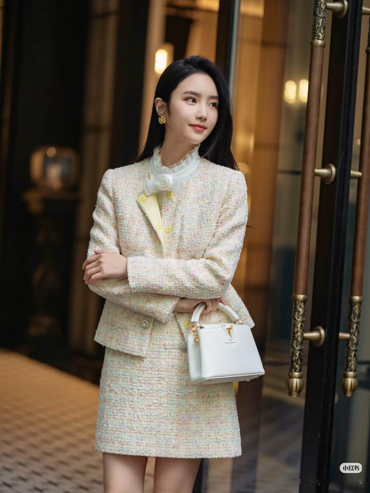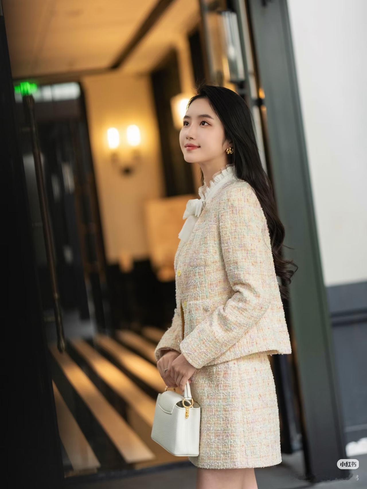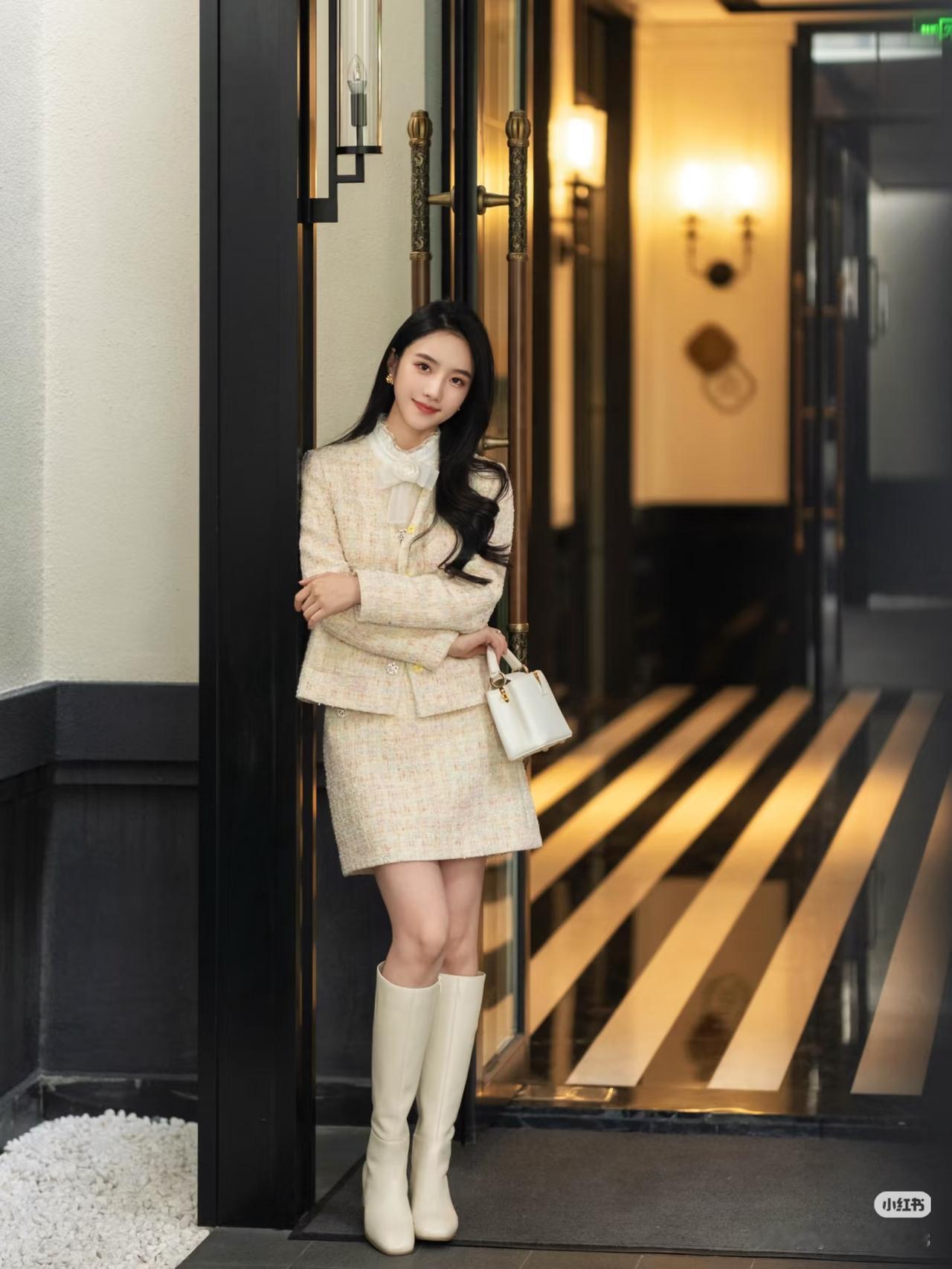 优雅气质,浅驼色毛衣搭配长裙,简约时尚。