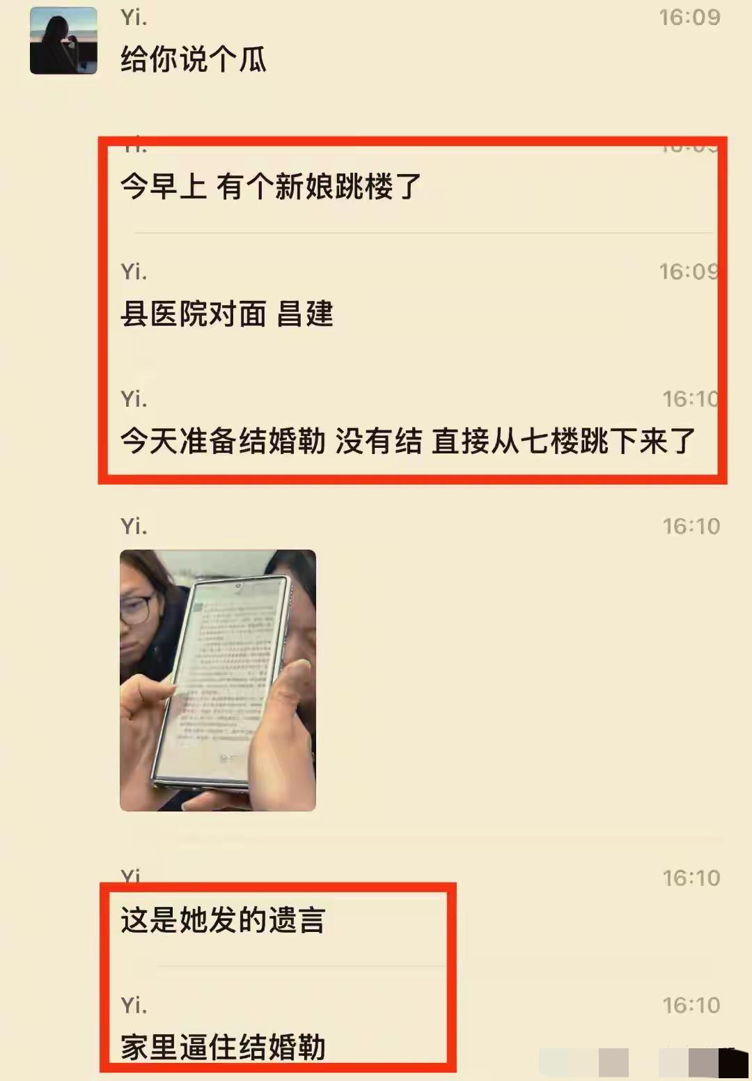 28岁女教师新婚坠亡,遗言看哭无数人:懂事的女孩,谁来心疼? 新婚当天,本该是人生最幸福的时刻,河南鲁山一位28岁的女老师,却选择从7楼一跃而下,结束了自己年轻的生命。 这事儿真的太让人唏嘘了。 魏老师是那种典型的“别人家的孩子”:有体面的教师编制,长得漂亮,对学生也好。据说出事那天,她还特意上完了周一的历史课才请假,是个非常有责任心的好老师。 可就是这么一个好姑娘,在自己家里却活得像个提线木偶。 据身边人透露,从大学到工作,这11年里她一直在反抗家里的逼婚和相亲。她不想结,但架不住父母的“亲情绑架”和亲戚的闲言碎语。最后,她妥协了,她在生前留言里说:“其实并不想结婚……但是我听话……” 这句“我听话”,听得人心里有多酸,就有多愤怒。 翻看她的婚纱照,虽然人美,但眼神里全是空洞,嘴角紧抿,一点笑容都没有。她在遗言里甚至用一种自嘲的口吻写道:“父母爱我给钱,对象爱我给钱,亲戚夸我懂事……” 她把自己仅有的3万块存款都交代得清清楚楚,最后唯一的愿望是让朋友把骨灰撒在有太阳和大风的天气里——她生前没能自由,死后只想随风而去。 更让人心寒的是,人走了,娘家和婆家还在扯皮。一个说嫁出去了,一个说没正式成婚,甚至遗体停放都成了难题。新婚坠楼 教师坠楼事件 教师坠楼去世 教师坠落 对于这种为了结婚而结婚的悲剧,大家怎么看?