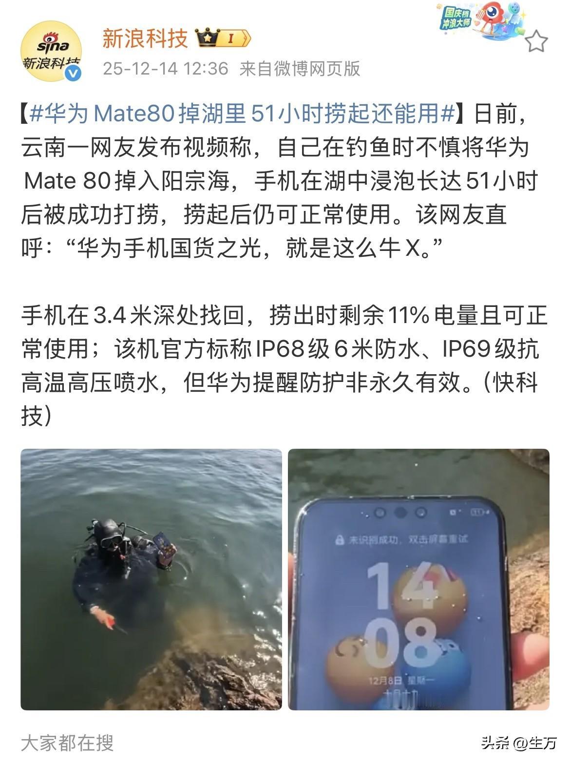 硬核:云南钓友的华为Mate80,掉湖里51小时捞起还能用[捂脸] 就在刚才,