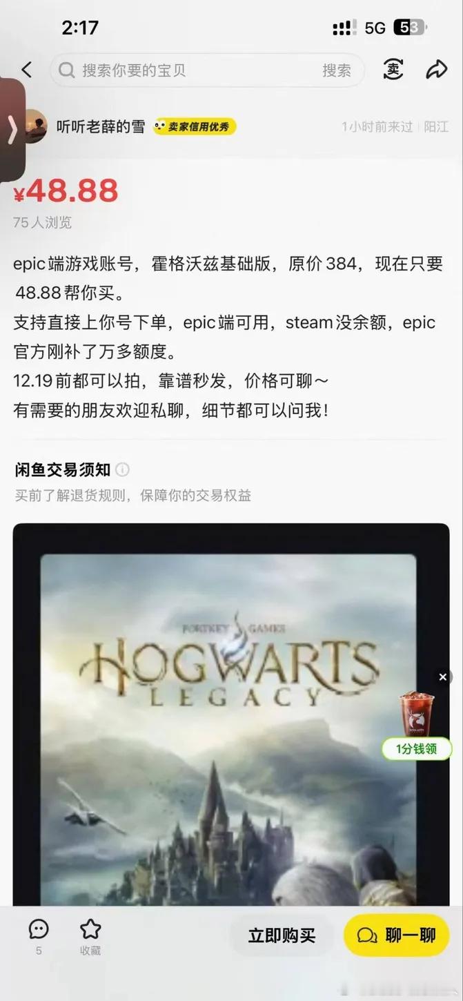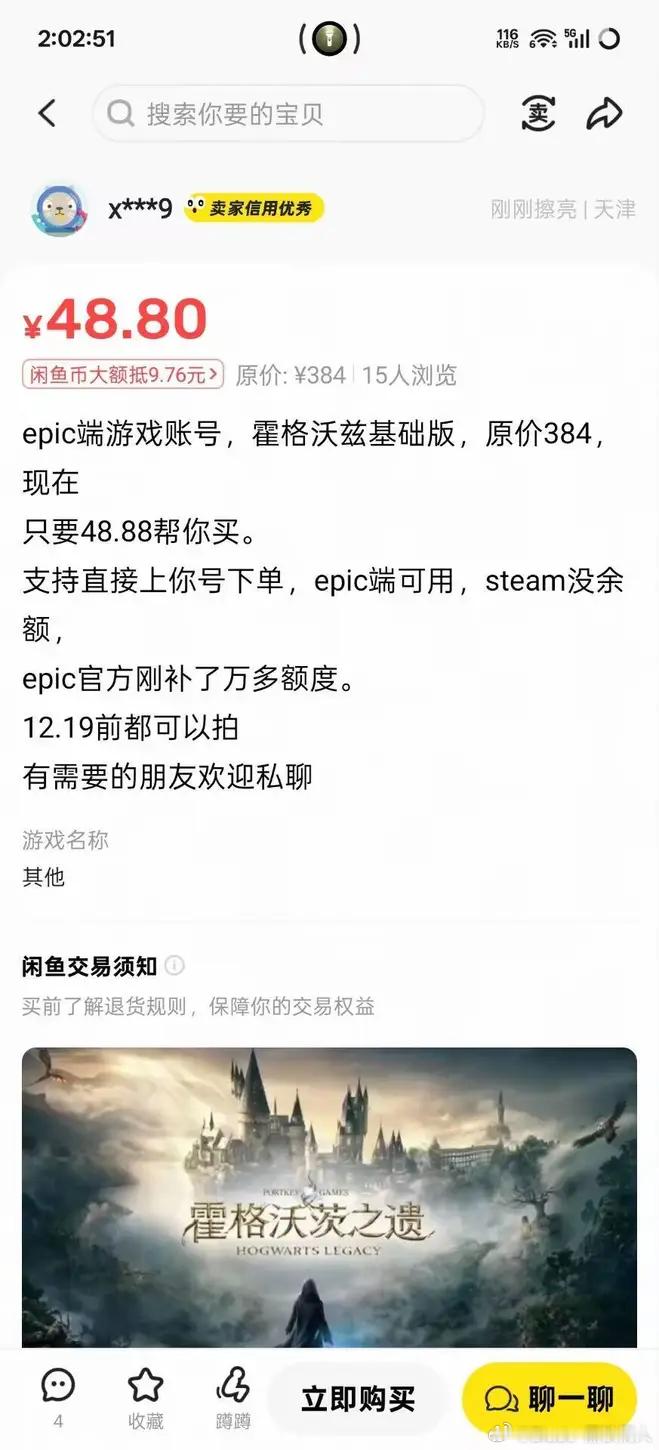 最近epic送霍格沃茨,然后有人想拿信息差赚钱……
