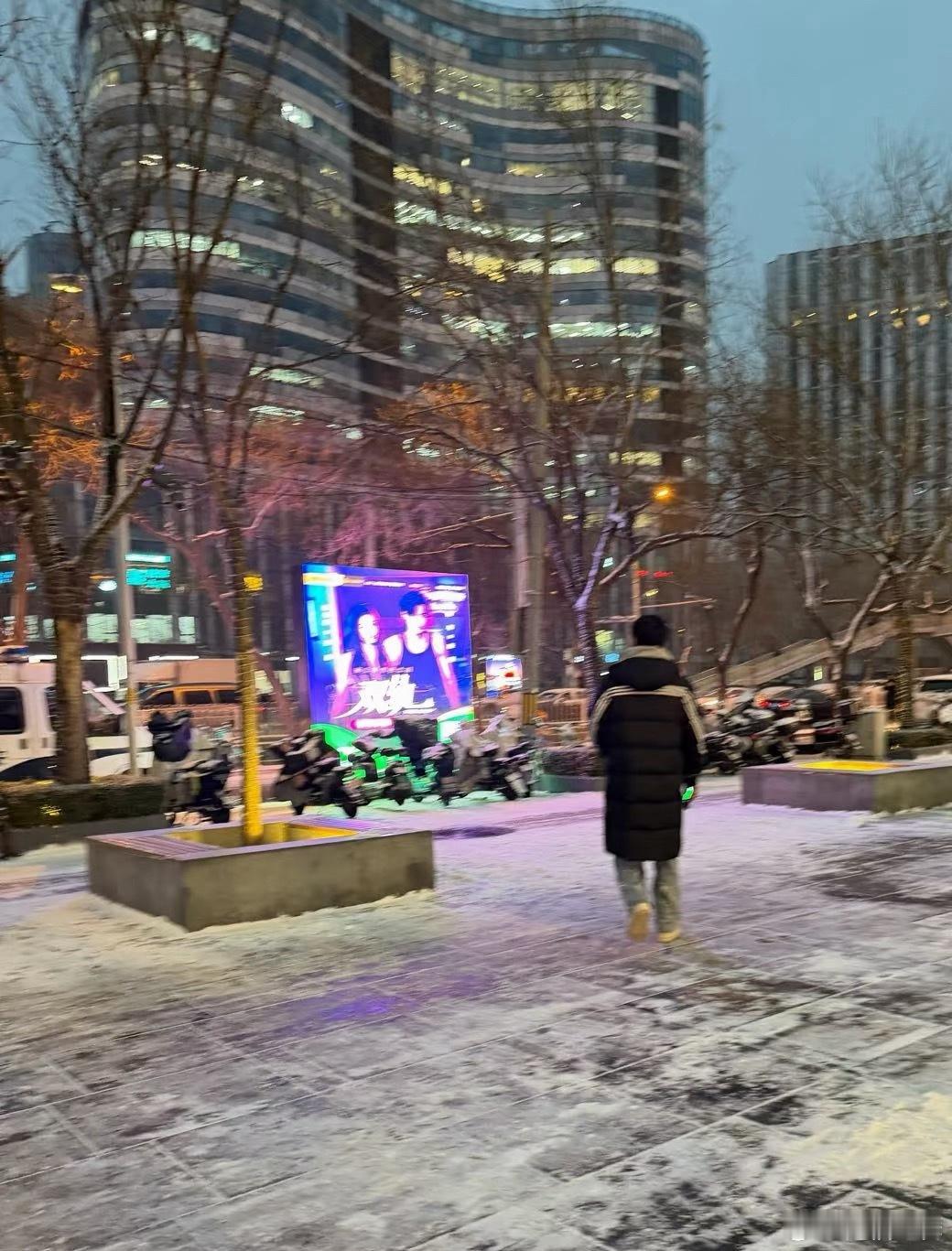 网友昨天在三里屯偶遇何与打卡双轨线下大屏!