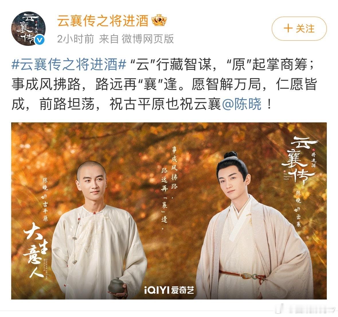 陈晓双角联动云襄为古平原应援古平原收官云襄传双向奔赴式应援 闻君商海功成,江湖亦传君名。”——云襄致古平原。陈晓两部作品角色隔空对话,让《大生意人》收官仪式感拉满!网友:这是陈晓古装角色团的内部应援吗?