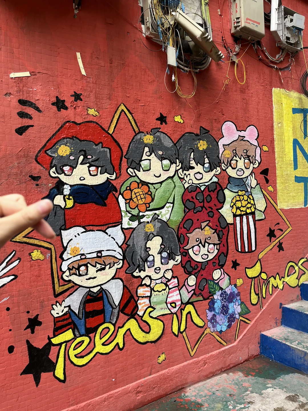 📍涂鸦一条街:不追星千万别去,大部分都是乱涂乱画,颜料味道很重,只有少部分涂鸦是干净的