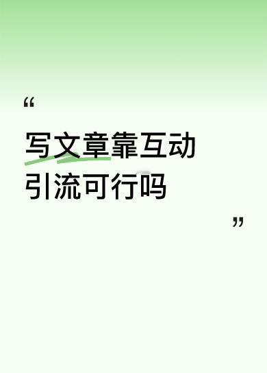 写文章靠互动引流可行吗王姐日记的文章说的,靠互动引流是可行的,她用自己的亲身体验来说教,得到了正实。我是新手,什么都不懂,感到非常迷茫,看了王姐日记的文章,使我得到了启发,不光发文章,还要多看友友们的文章,留下评论,点赞加关注,和作者互动,这样做了,就能引流