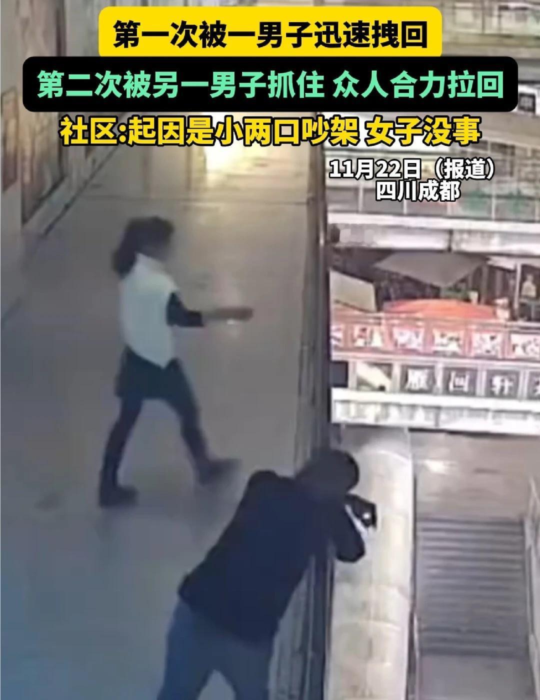 1分钟内!女子两次翻越护栏欲从5楼跳下 第一次被一男子迅速拽回,第二次被另一男子抓住 众人合力拉回...社区:起因是小两口吵架 女子没事
