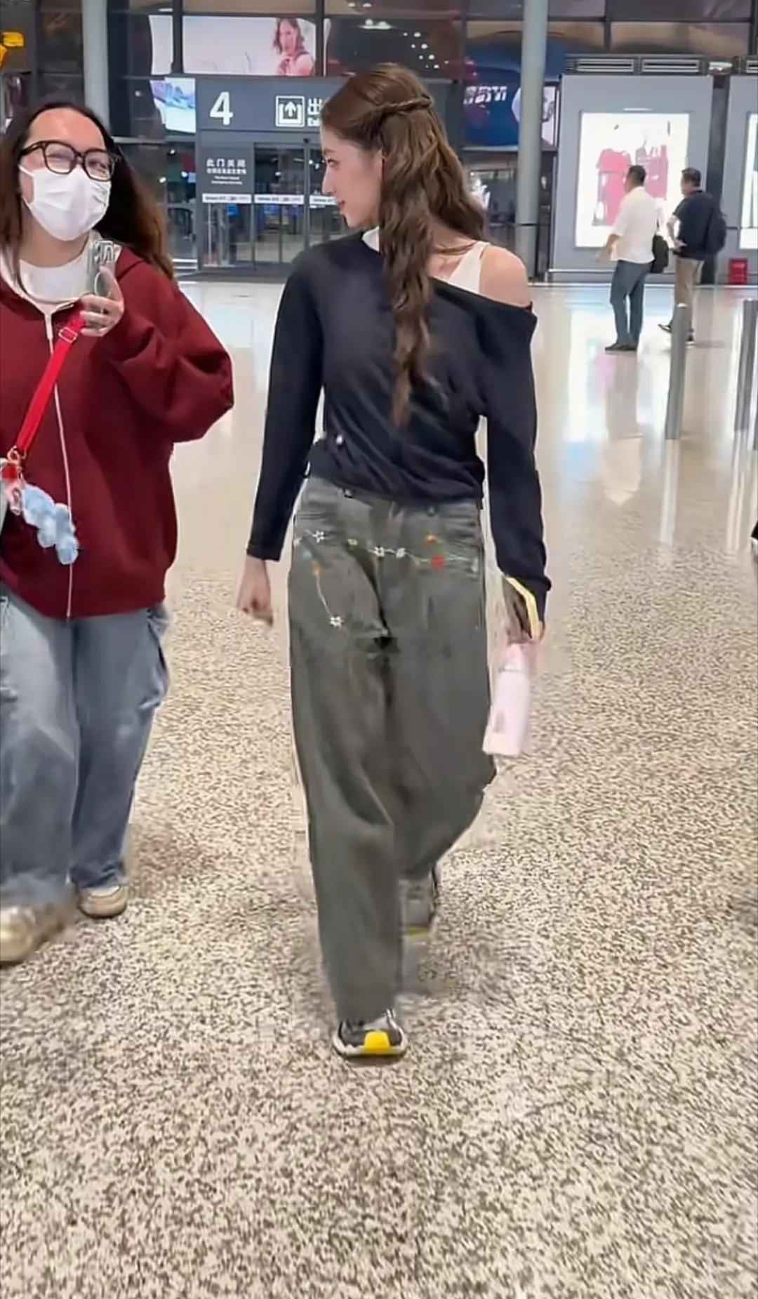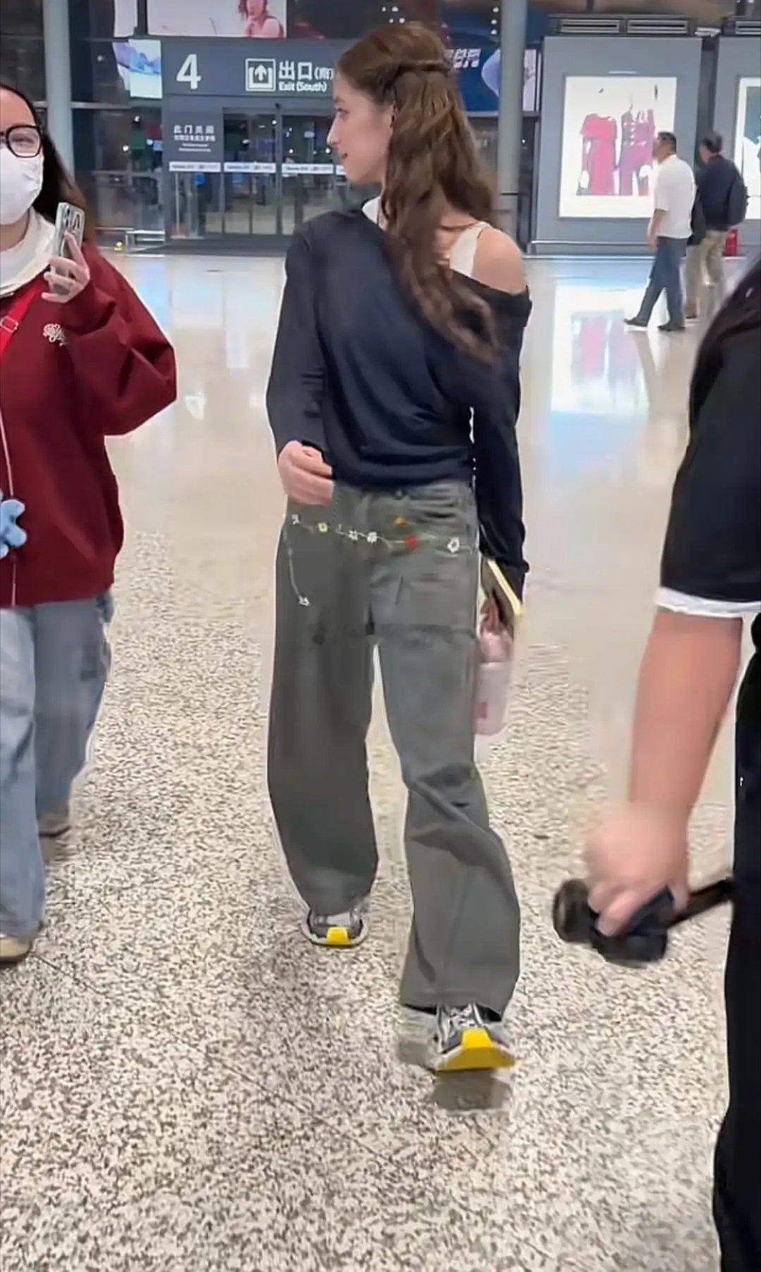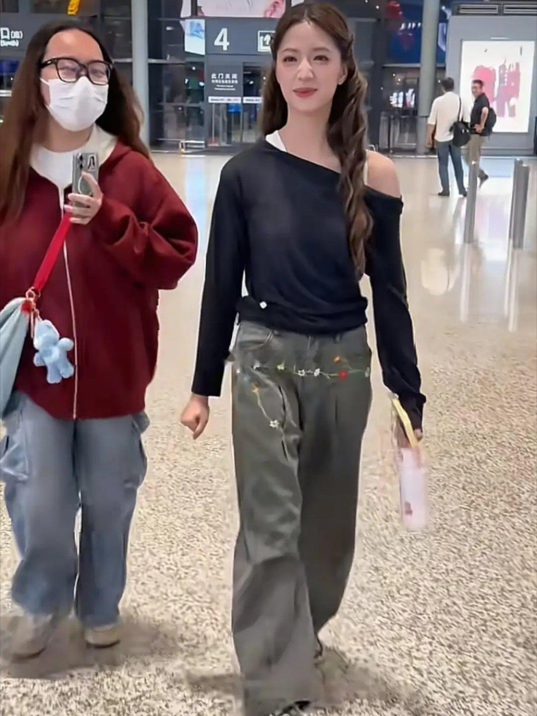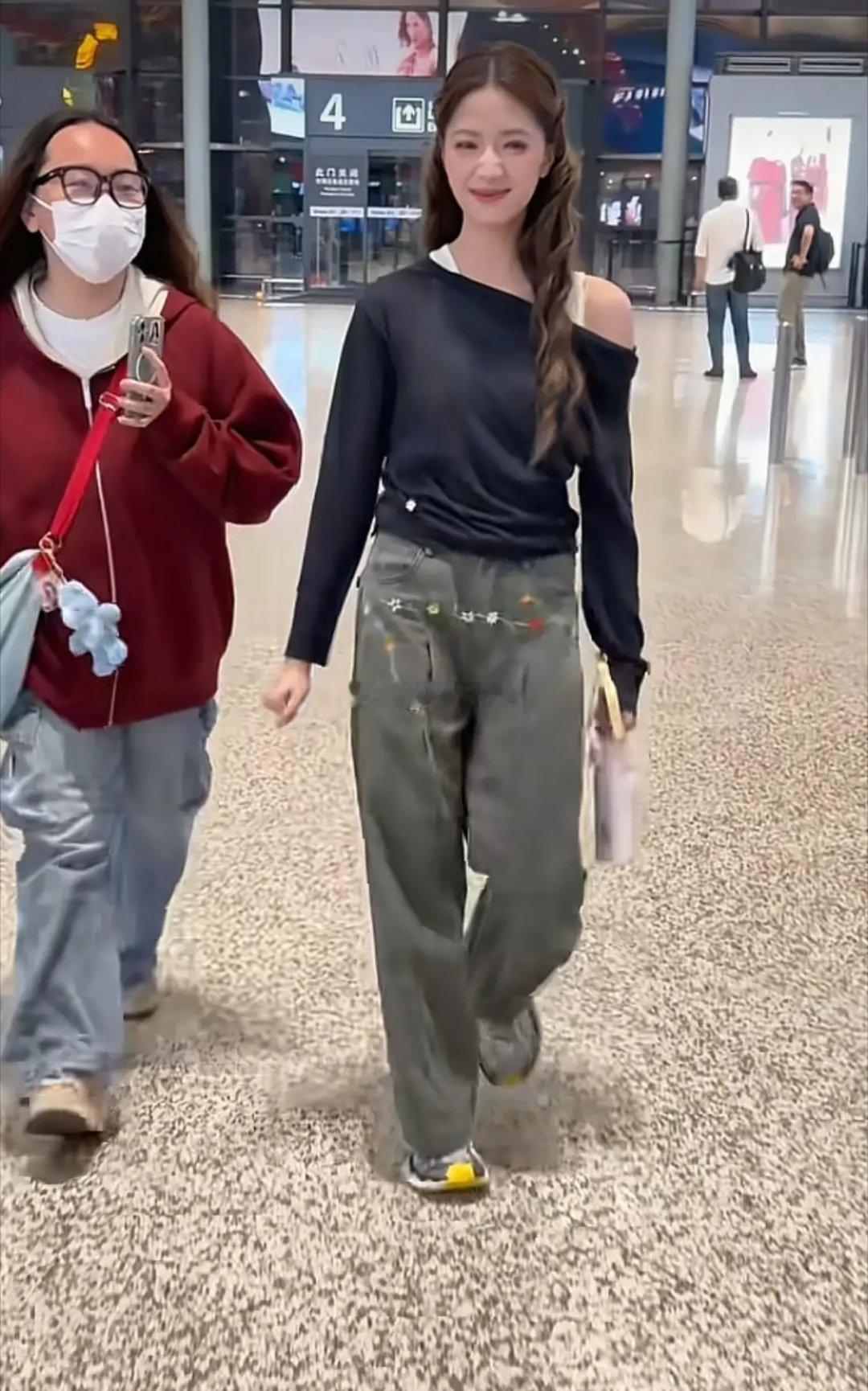 21岁欧阳娣娣机场亮相,微卷发慵懒随性,打底衫配阔腿裤简约利落,时髦中透着高级感,像极了气质出众的姐姐,亮眼吸睛。
