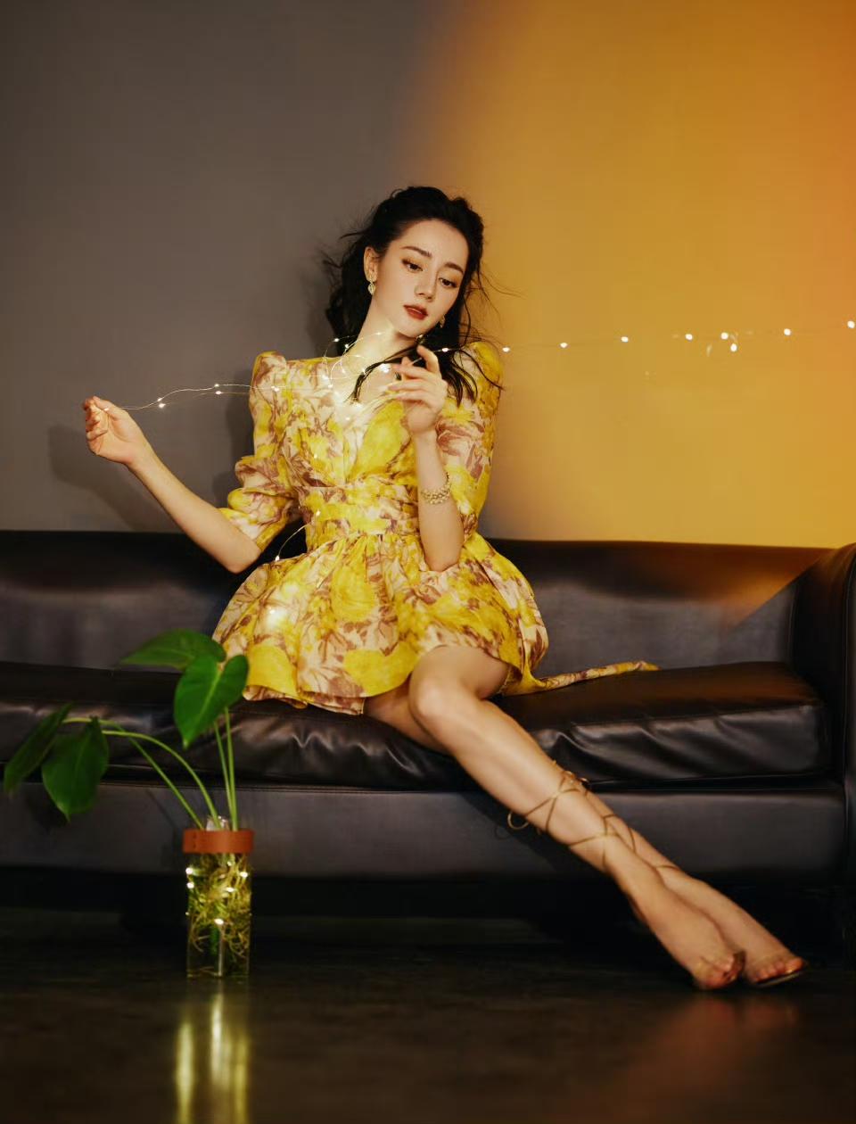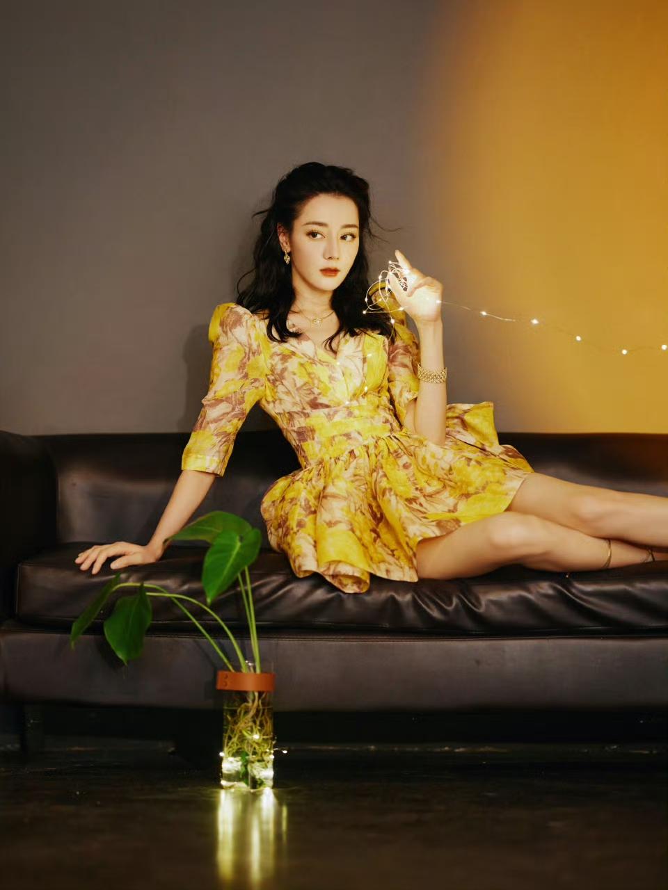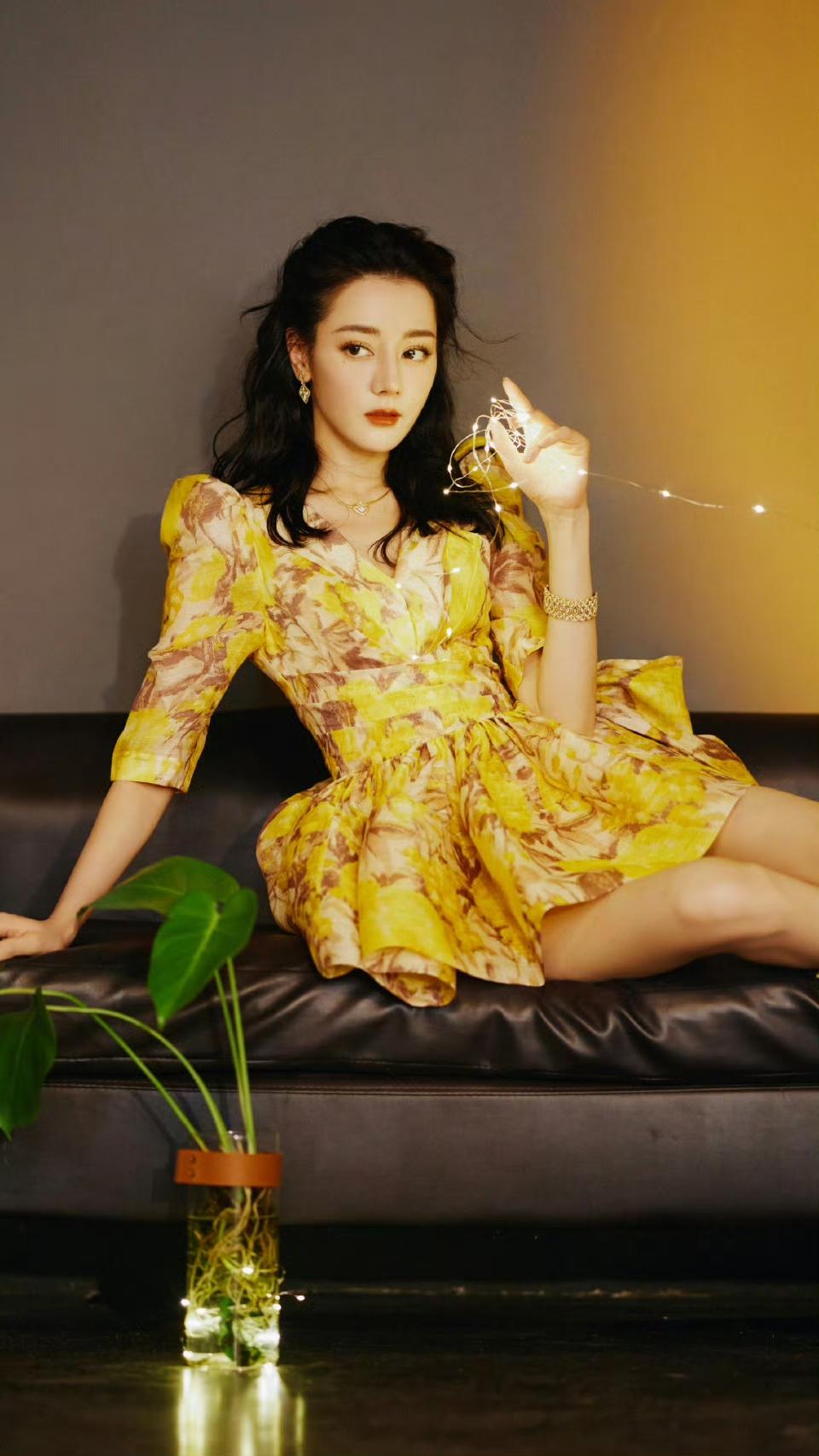 优雅黄裙,复古风情,绿植相伴,自然之美。迪丽热巴!!!!
