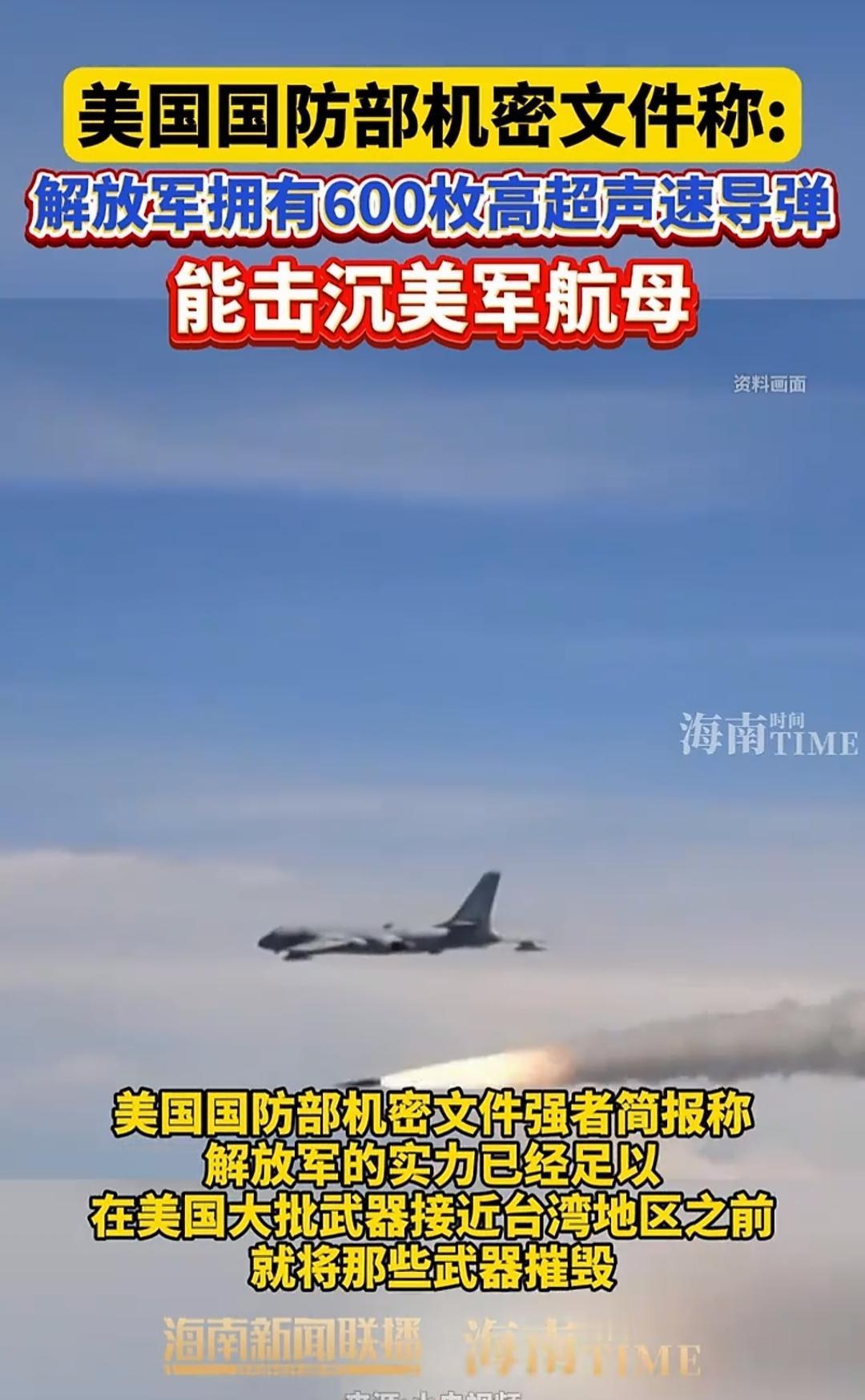 我还以为啥秘密呢?这不是全世界都知道的吗?中国的高超音速导弹能击沉美国航母。大陆的军事实力可以碾压台湾。 美国国防部,哦,不,是美国战争部现在才知道? 那CIA应该要扣工资了。 这么重大的失误。 不过他们还是有个错误认知,以为只有高超音速导弹才能击沉航母,所以只去考虑导弹数量。 其实我们击沉航母的战术还有其他。 点右上角关注我,我们一起去看这个魔幻的世界