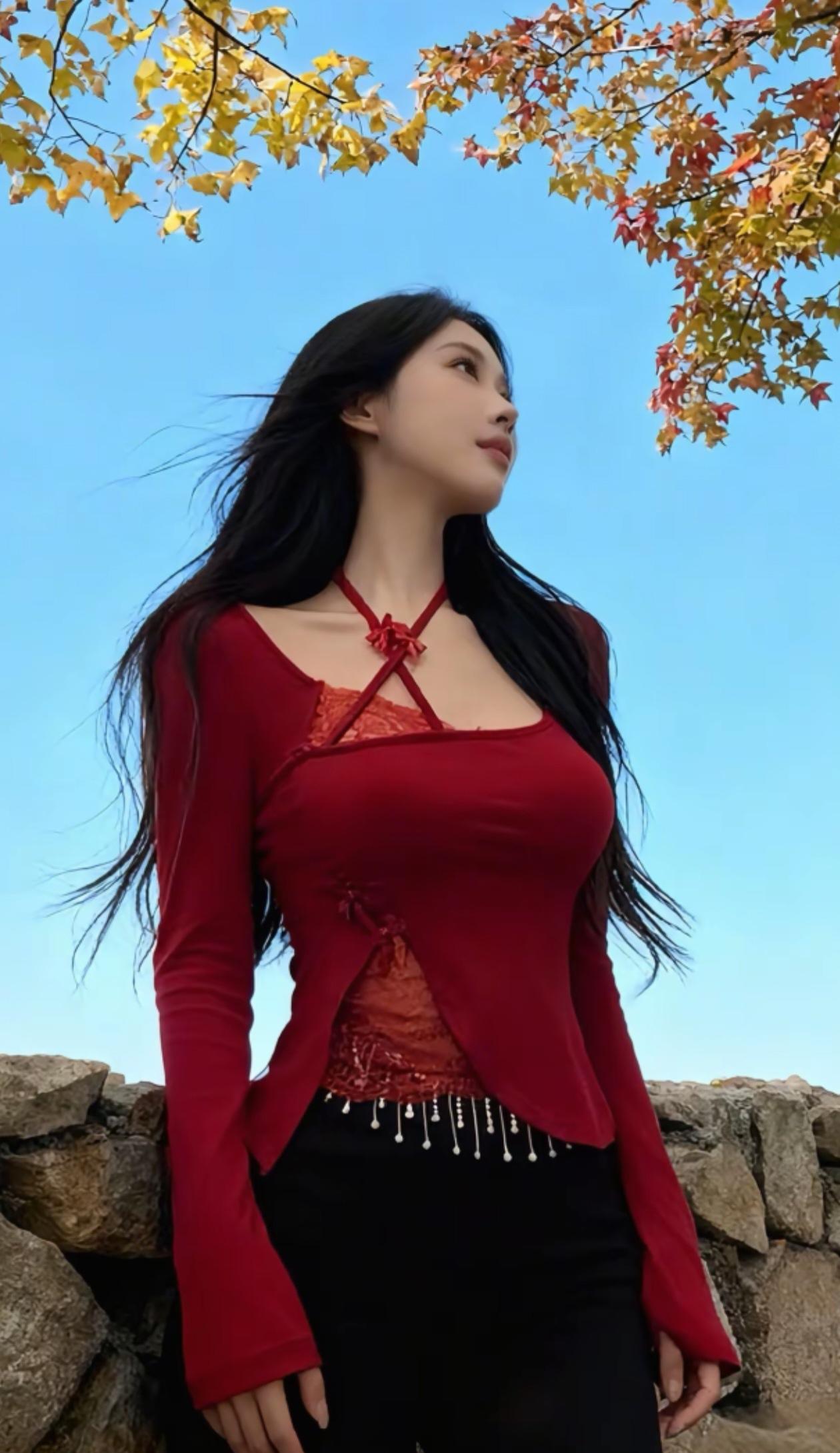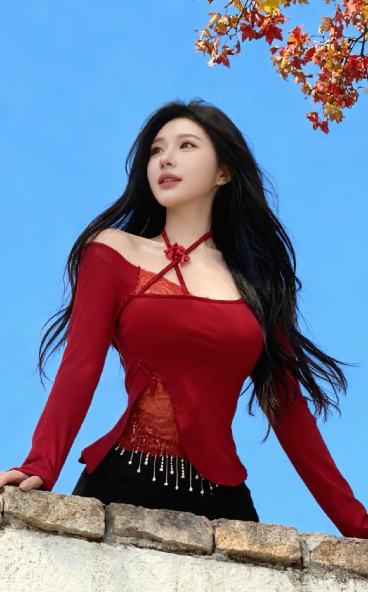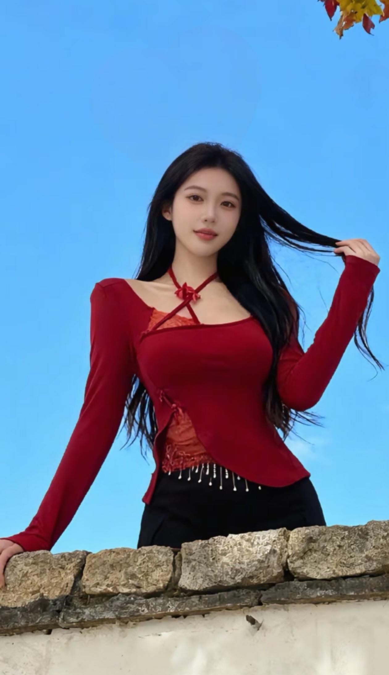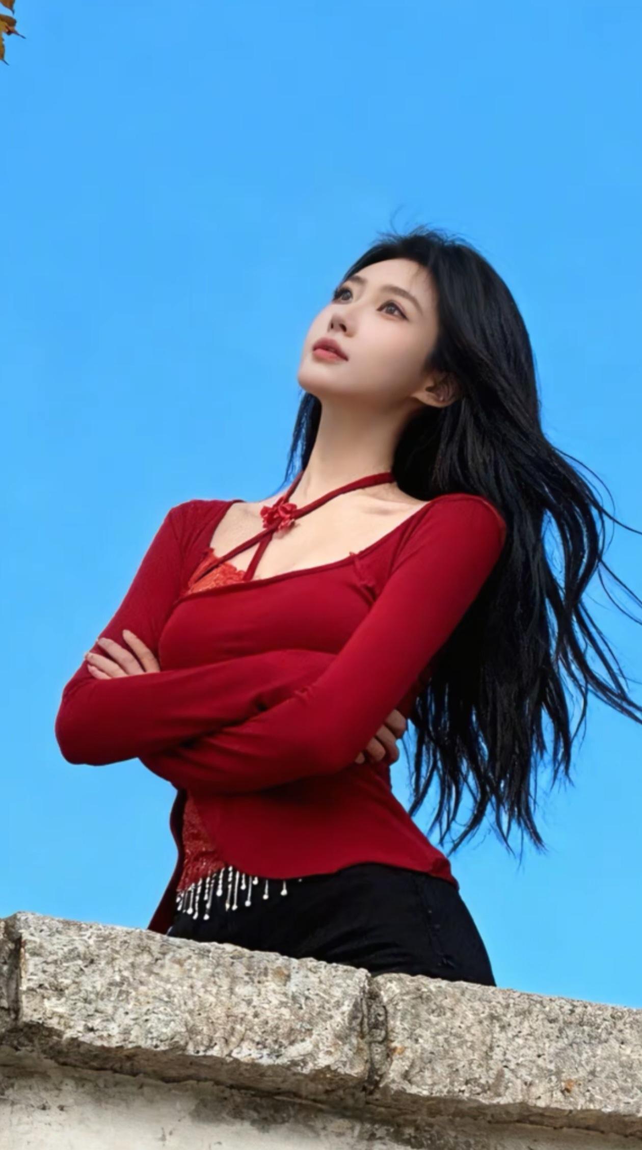 甜美少女风,黑裙搭配红唇,清新自然,气质出众!