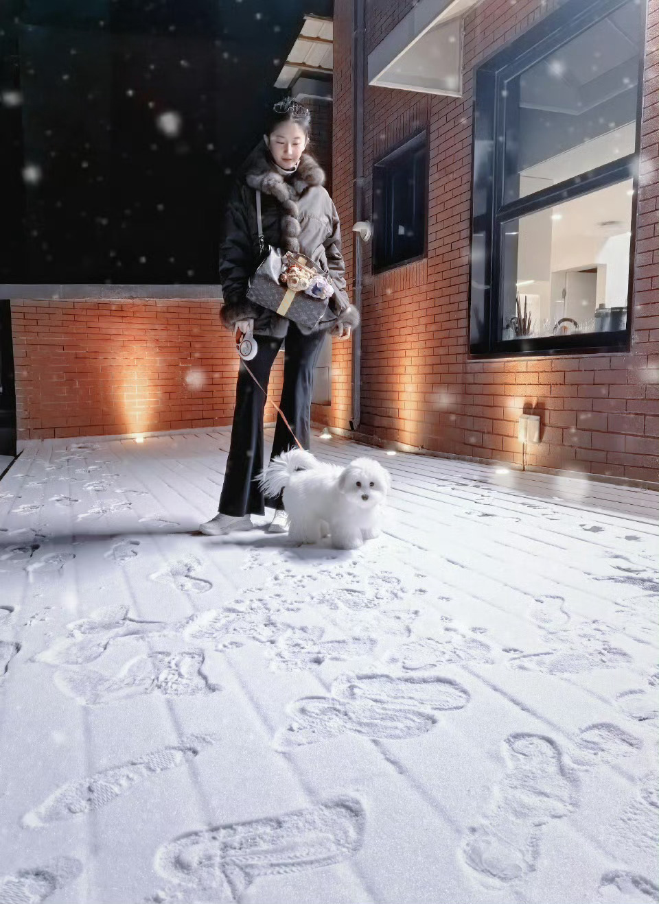 刘亦菲晒初雪哈哈合照神仙姐姐好美,美得我心都化了