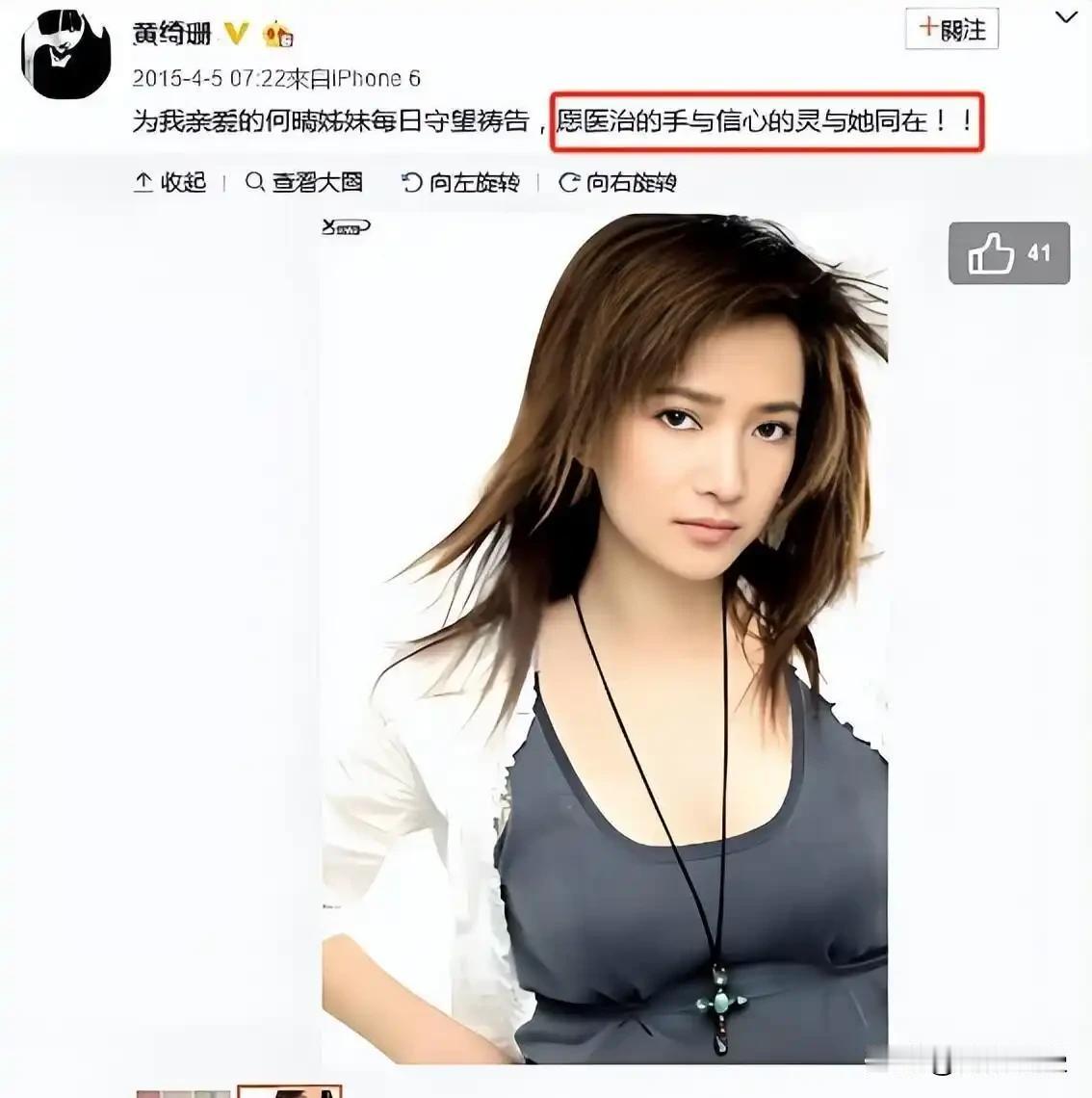 黄绮珊作为何晴的姐妹一定很难过吧,就在今天何晴的家人发布讣告,告知何晴去世了。
