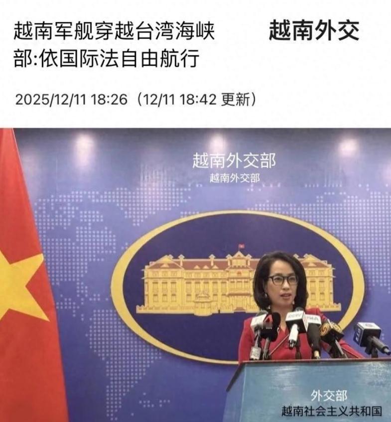 中日关系紧张之际,越南派遣军舰穿越台湾海峡,12月11日越南外交部发言人表示:任何国家都享有在台海自由航行的权利。越南也成为东南亚第一个派遣军舰穿越台海的国家。 没人比越南更清楚,它的钱袋子有多依赖中国。2024 年光广西对越贸易就破了 2900 亿,东兴口岸的边民靠着互市,家家户户盖起了小楼。 可钱赚得再稳,越南也没放弃 “两边捞好处” 的心思。“平仙” 号闯台海前一周,越南军方高层刚跟日本海自司令碰过面,敲定了武器援助的事儿,下一步还要在南海搞联合巡逻。转头又对着美国笑,收下了美方给的教练机,还在跟五角大楼谈买 F-16 战机的生意。 它算得精:跟日本走近,能借日本的影响力在东盟里压过中国一头;抱美国大腿,能靠军事合作撑场面,万一南海起摩擦,还能喊人 “撑腰”。这次闯台海,就是给日美递的投名状 — 你们不是喊着 “台海有事” 吗?我先上了。 但越南的胆子,也就到 “递投名状” 为止。“平仙” 号穿越台海时,全程关着雷达,武器系统都锁着,生怕跟解放军的军舰照面。它心里门儿清,真把中国惹急了,吃亏的是自己。 去年越南腰果丰收,全靠中国电商直播间帮着卖,不然堆在港口都得烂掉;广宁省的渔民,每天驾着小船到中越共管海域捕鱼,要是合作黄了,全家生计都没着落。 这种又想投机又怕翻车的矛盾,在南海更明显。前阵子越南刚派海警船在万安滩挑事,转头就派经贸代表团来中国谈合作,求着扩大水果出口。 它看着乌克兰打了这么多年,经济烂成一滩泥,也怕自己成了大国博弈的棋子。所以才想出这么个 “两头下注” 的招:用台海的小动作给中国施压,又在南海拉着印尼、马来西亚搞演习,分散风险。 可它忘了,台海不是它能随便碰瓷的地方。“平仙” 号刚进海峡,解放军的战机就升空了,7 艘军舰跟着警戒,全程盯着它的一举一动。 这种克制不是怕它,是看在两国经贸的情分上 — 毕竟 2024 年越南对华出口涨了 28%,多少越南农户靠着中国市场吃饭,多少中国商人在越南开厂做生意,这些都不能说断就断。 更有意思的是,越南递的投名状,日美压根没接。日本忙着在钓鱼岛增兵,没功夫管越南;美国航母在西太平洋的部署都紧巴巴的,更不会为了越南跟中国翻脸。越南这通操作,说白了就是自作多情。 其实越南最该明白,大国博弈里,没有永远的 “平衡术”,只有永远的利益。它靠着中国市场赚得盆满钵满,转头就用台海议题来换好处,这种 “赚中国的钱,踩中国的红线” 的事儿,根本长不了。 就像 “平仙” 号最终还是灰溜溜地回了越南,越南的投机算盘,也早晚会落空。钓鱼岛的对峙会平息,台海的风浪会过去,但中国守着主权红线的决心不会变。 越南要是还拎不清,继续在敏感问题上玩火,迟早会把手里的经贸好牌,打得一干二净。 毕竟,能让它安安稳稳赚钱的,从来不是远在天边的日美,而是近在眼前的中国。这一点,越南该早点想明白。