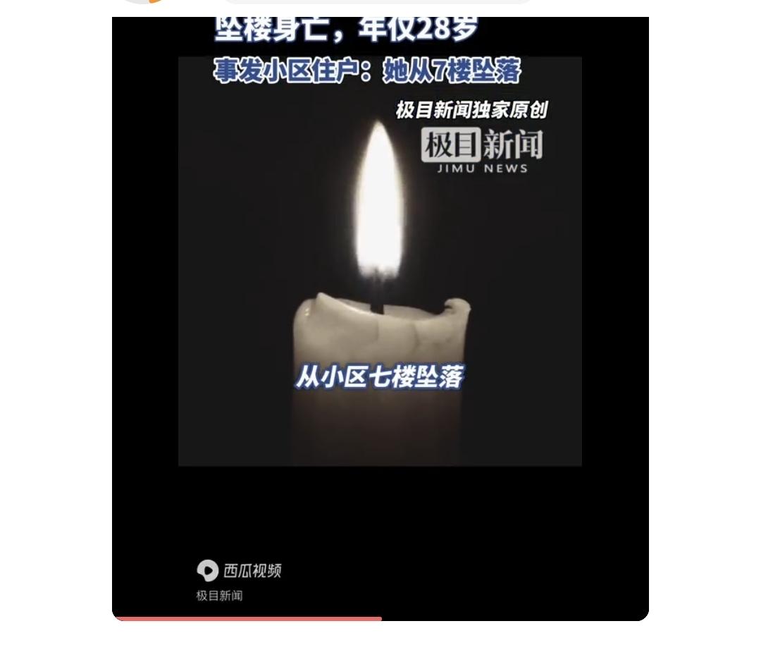 红嫁衣未凉,28岁女教师新婚坠楼:朋友圈一句“不想结婚”,戳痛无数人的难言之隐 12月10日,河南鲁山县的清晨本该满是喜气——28岁的高中女教师身着嫁衣,刚踏入婚姻的门槛。可谁也没想到,上午9点多,一声沉闷的声响打破小区宁静,她从7楼坠落,永远定格在了新婚当天。 警车和救护车的鸣笛声划破长空,小区居民议论纷纷,从最初以为的“打架闹事”,到后来得知是刚结婚的新娘,所有人都陷入了沉默。更让人揪心的是,网上流传的她生前朋友圈截图,那句“其实我并不想结婚”,像一根刺扎进每个人心里。 95后的她,是受人尊敬的高中教师,在学生眼里温柔耐心,在亲友口中乖巧懂事。可这份在外人看来“圆满”的婚姻,背后藏着多少不为人知的挣扎?或许是父母催婚的压力,或许是对未来的迷茫,或许是无法言说的委屈,让她在人生本该最幸福的一天,选择了以这样惨烈的方式告别。 婚姻本该是“我愿意”的双向奔赴,而不是“不得不”的妥协将就。现实里,多少人被“到了年纪该结婚”“别人都这样”的声音裹挟,把自己推进不想要的婚姻;多少人在父母的期盼、亲友的催促下,忽略了自己内心的真实感受,硬着头皮走进围城。 这位女教师的悲剧,不是一句“可惜”就能概括的。它戳破了成年人世界里最残酷的真相:有些“圆满”,是用委屈自己换来的;有些“体面”,背后藏着无数个深夜的崩溃。我们总在劝人“将就”“忍耐”,却忘了问一句:你真的快乐吗? 婚姻的意义,从来不是完成任务,而是找到那个能让你心甘情愿共度一生的人。愿每个女孩都能被命运温柔以待,不用在催婚中妥协,不用在将就中委屈自己。如果你身边也有被催婚的朋友,如果你也曾面临这样的困境,欢迎在评论区说说你的看法——你觉得婚姻该将就吗?新婚跳楼 坠楼少女