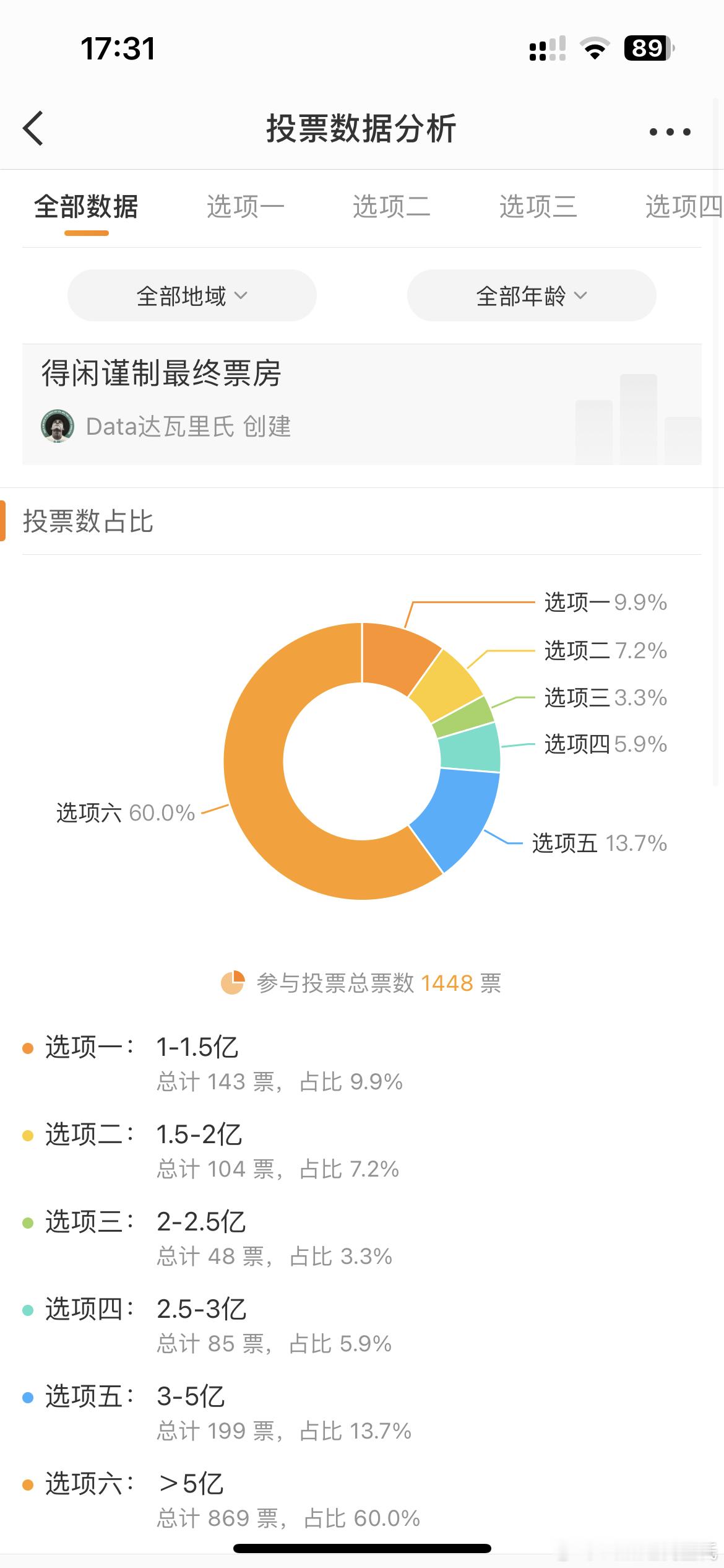 得闲谨制票房超3亿3亿了,之前投票13.7%押对了