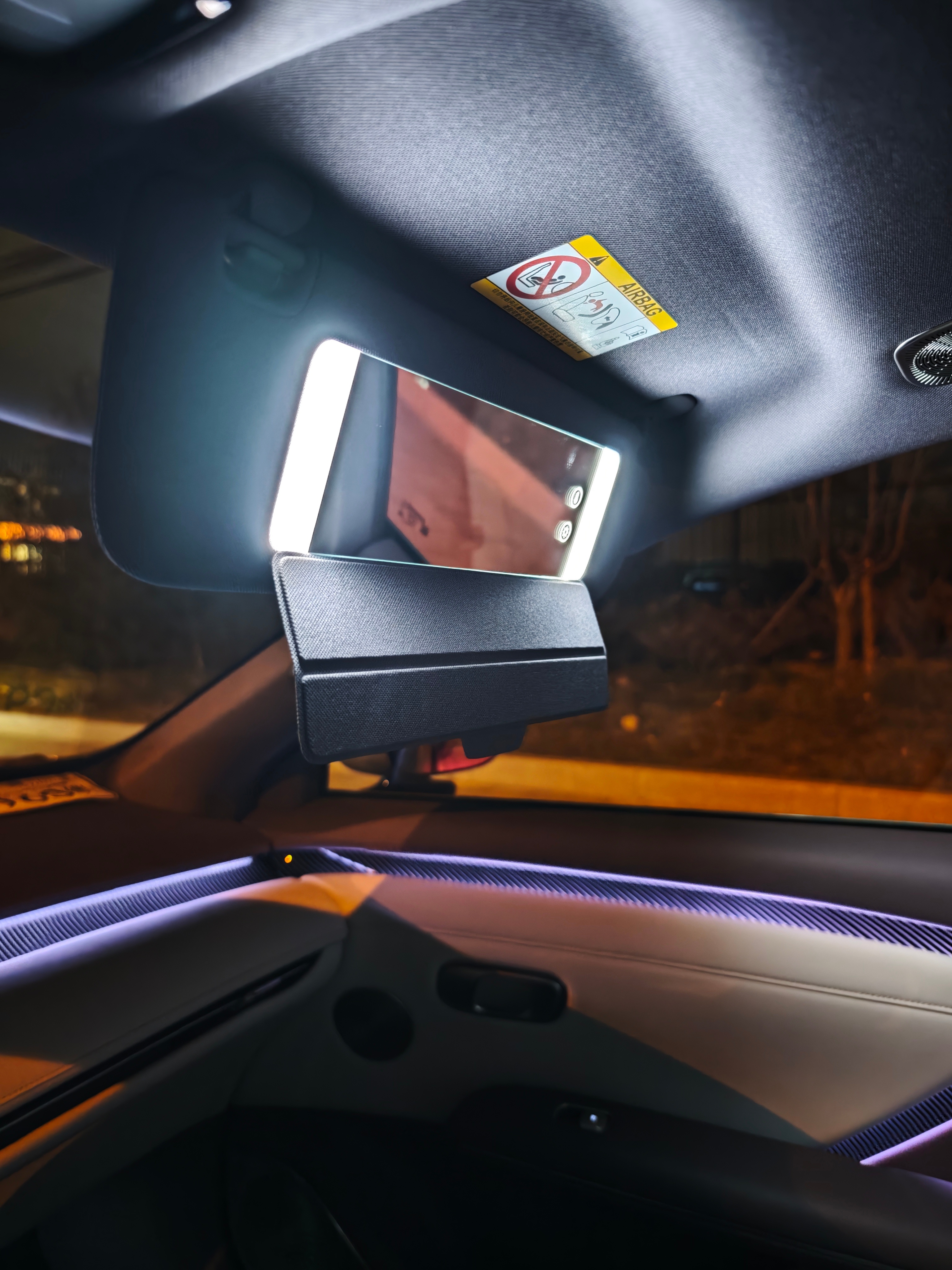 这是我见过最亮的遮阳板化妆镜的灯,跟手电筒似的可以调亮度,可以调色温,主副驾都有