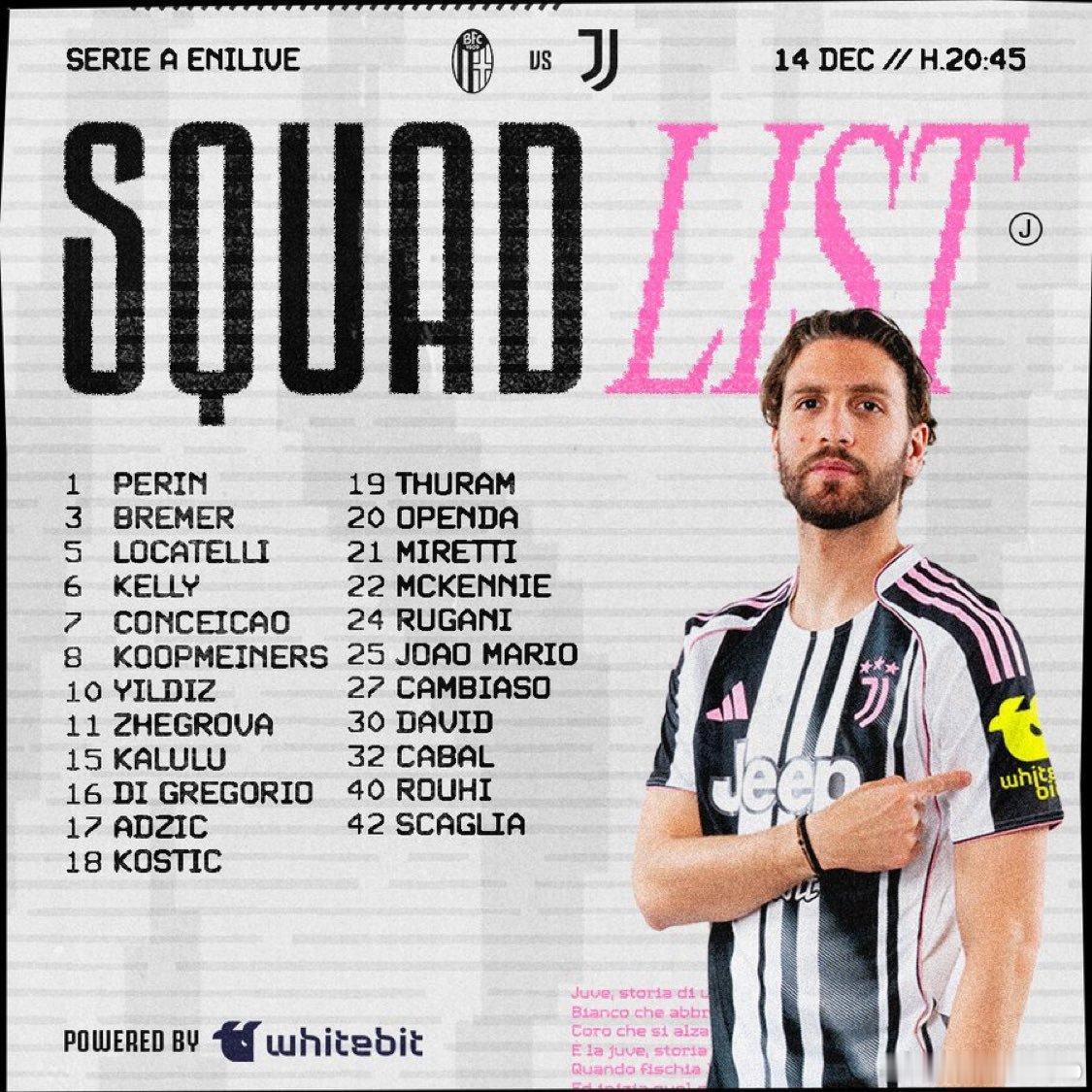 你妇公布了客战博洛尼亚的比赛大名单,米利克、平索里奥、弗拉霍维奇、加蒂因伤缺阵。尤文图斯意甲联赛博洛尼亚vs尤文图斯