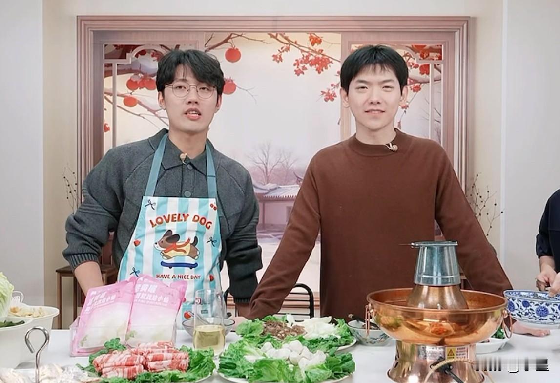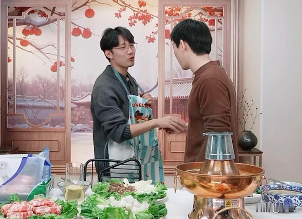 与辉同行还挺应景 今天支起了炉子涮火锅 鹏鹏围裙一系还挺像回事儿[耶] 传熙特别捧场 一口一个大厨的叫着 这位鹏“大厨”现场传授做饭秘诀 拿起筷子,肉放锅里 静等肉熟,夹到嘴里 大功告成[耶][耶][耶] 如此的行云流水 一看平时就没少练[偷笑] 今天哥俩的交接班可谓神速 鹏鹏说他见缝插针去剪个头发 扔下传熙就跑了 咱等晚上10点那场交接班 看看帅鹏剪成啥样了[大笑]