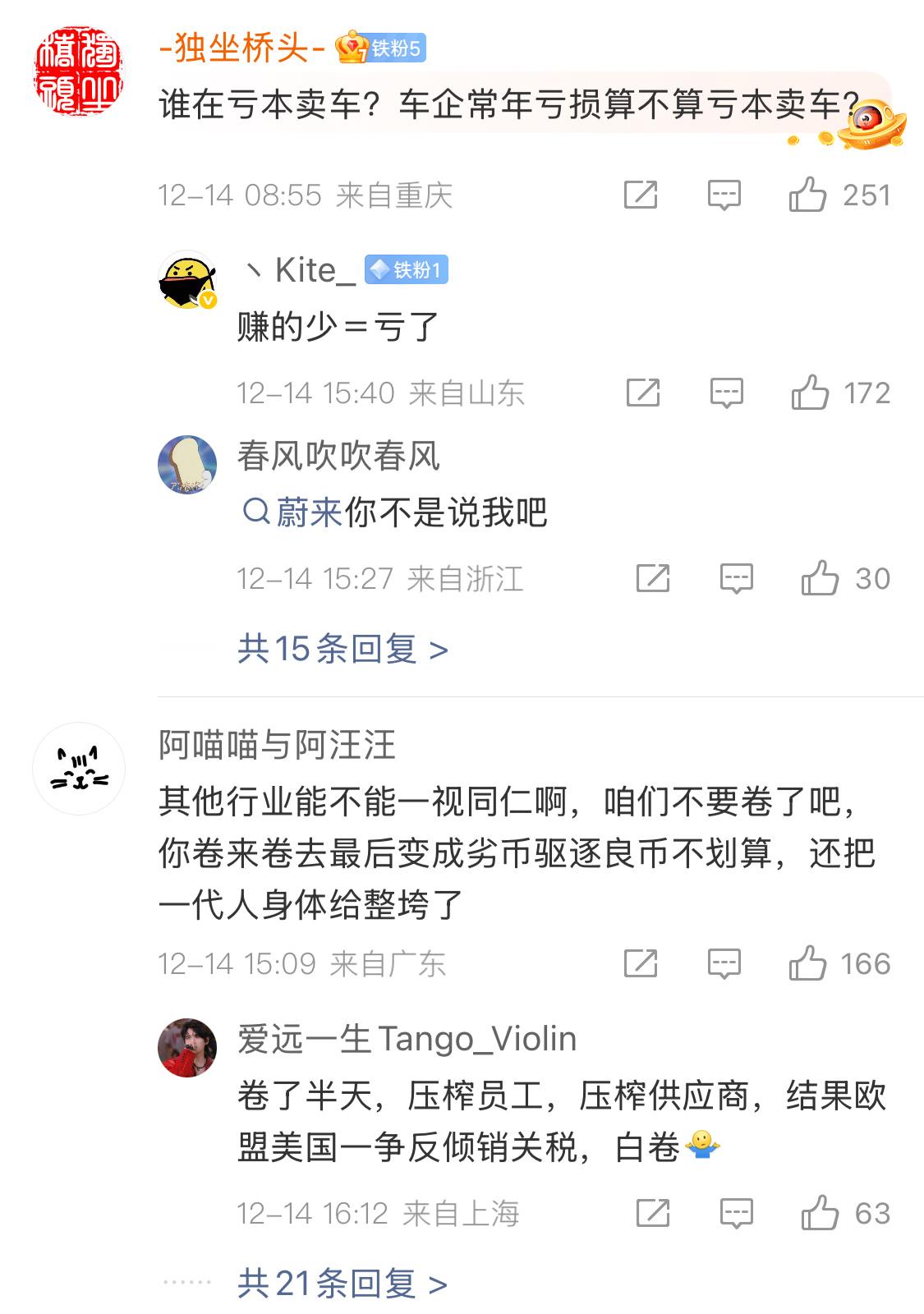现在电车太卷了,相比前两年,行业竞争异常激烈,估计要慢慢进入调整周期了。不过,今