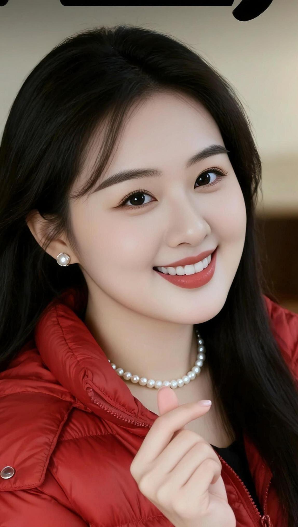 温柔甜美的少女,红色背景下的清新自然温柔蓝裙少女红衣微笑少女温柔气质粉色