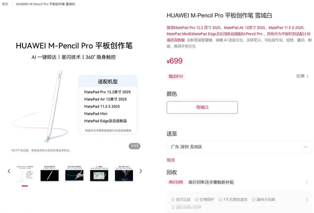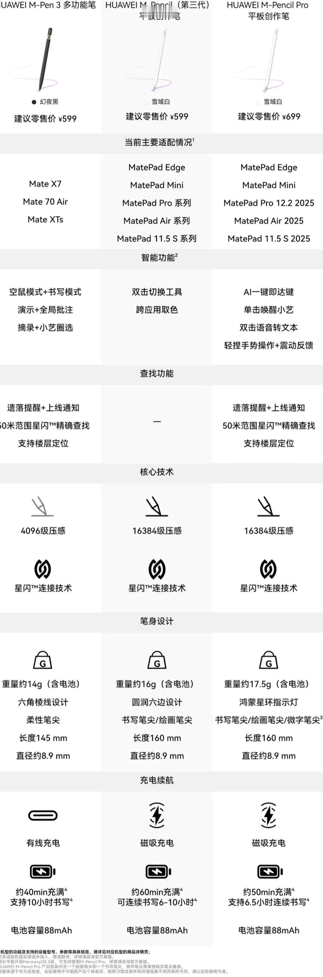 【以后不叫手写笔了,华为M-Pencil系列官方定名“平板创作笔”】在 2019 年 11 月的华为 MatePad 发布会上,华为余承东正式发布了 M-Pencil 手写笔:支持 4096 级压感、磁力吸附等。沿用了六年“手写笔”之名的 M-Pencil 系列现迎来改名,华为官网显示,目前在售的 M-Pencil(第三代)、M-Pencil Pro 均定名为“平板创作笔”。