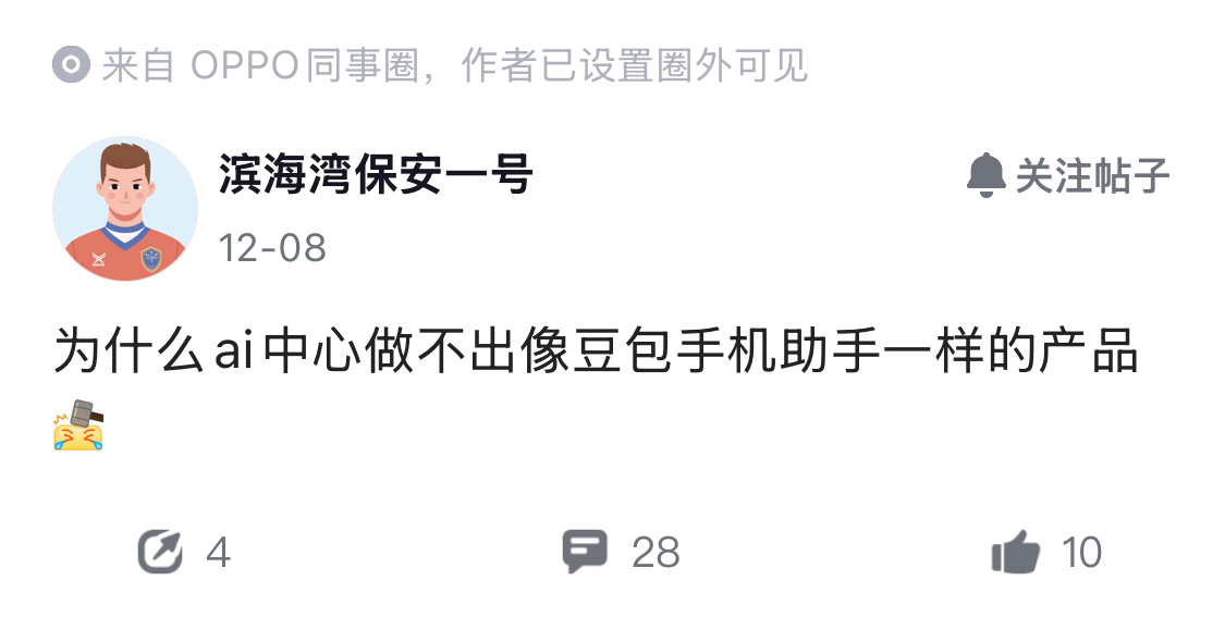 绿厂同事圈有人在讨论,为什么AI中心做不出像豆包手机助手一样的产品?未来,华为、
