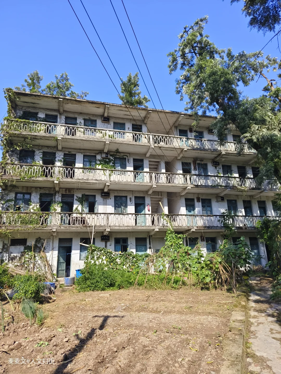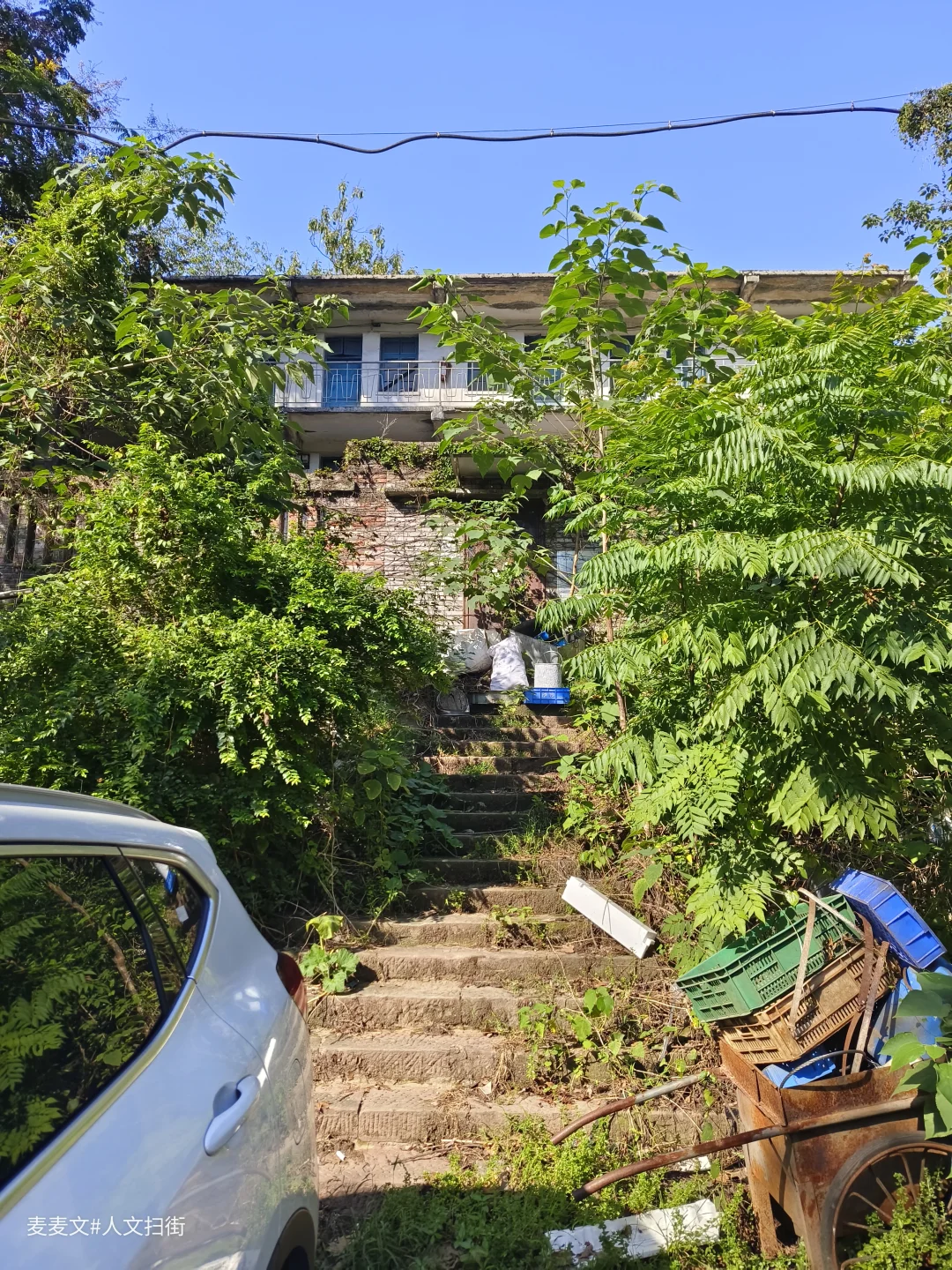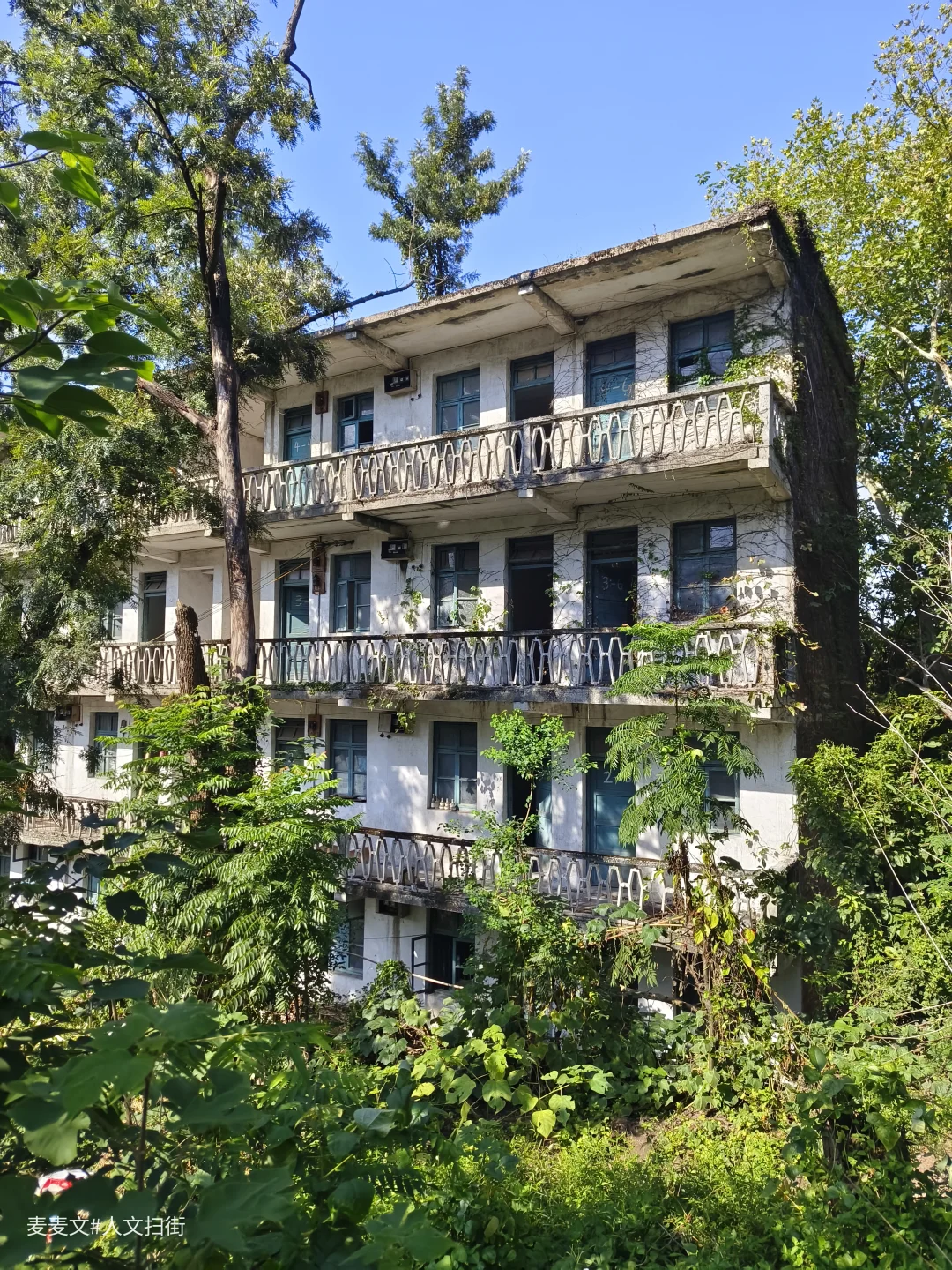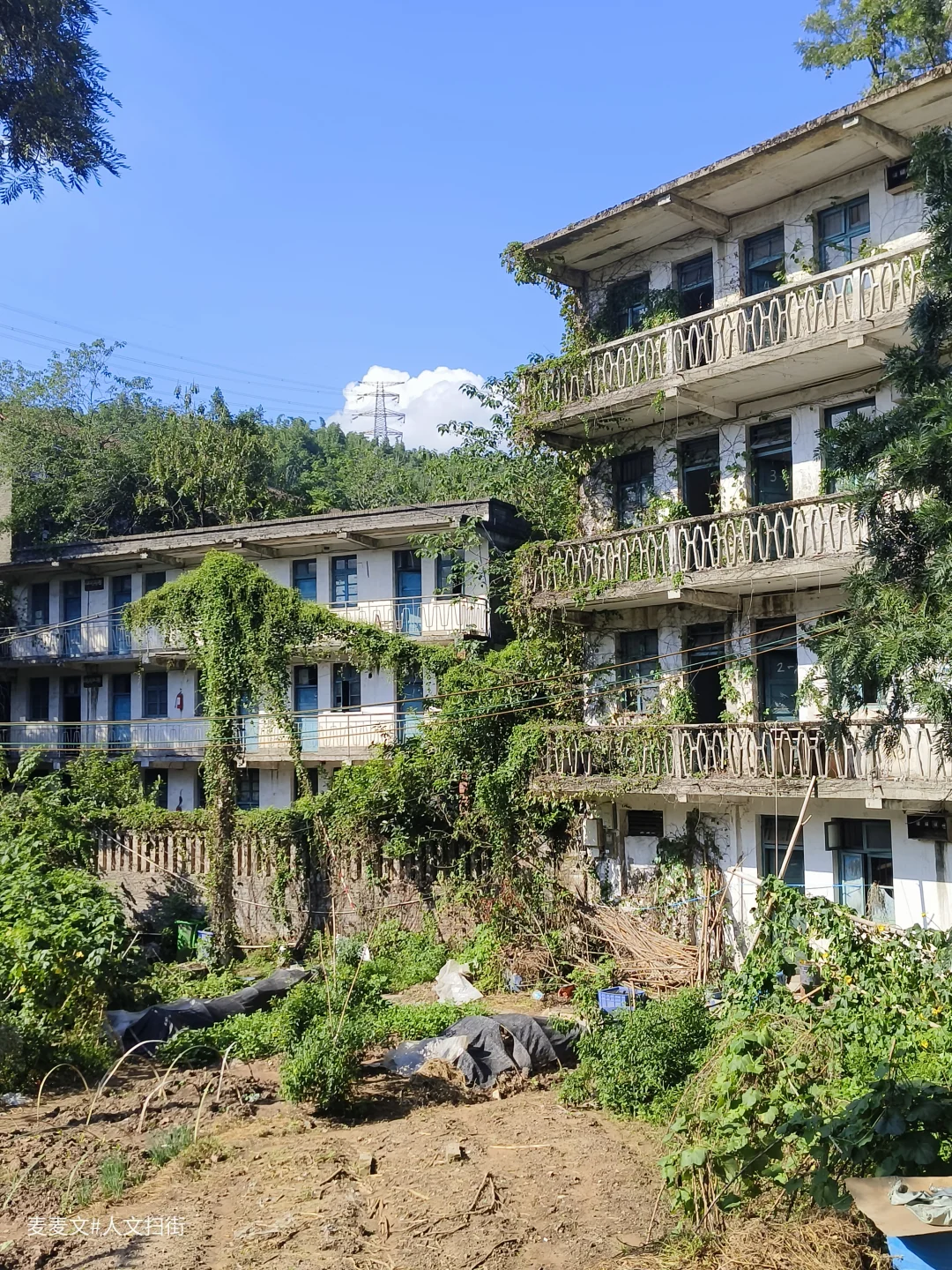 上周末去重庆北碚扫街,偶然发现了一处像是废弃学校的地方。操场的篮球架孤零零地立在那里,篮板布满裂痕。几栋爬满藤蔓的楼房,斑驳的墙体诉说着岁月的故事,藤蔓沿着镂空阳台栏杆肆意攀爬,仿佛想要将时光挽留。这栋被绿植簇拥的老楼,在蓝天的映衬下,静谧而又沧桑。曾经,这里或许充满着欢声笑语、烟火日常,而如今,它像是一位沉默的长者,独自回味着往昔的热闹与温情,静静伫立在大沱口这片天地间,成为记忆里一抹独特的风景。