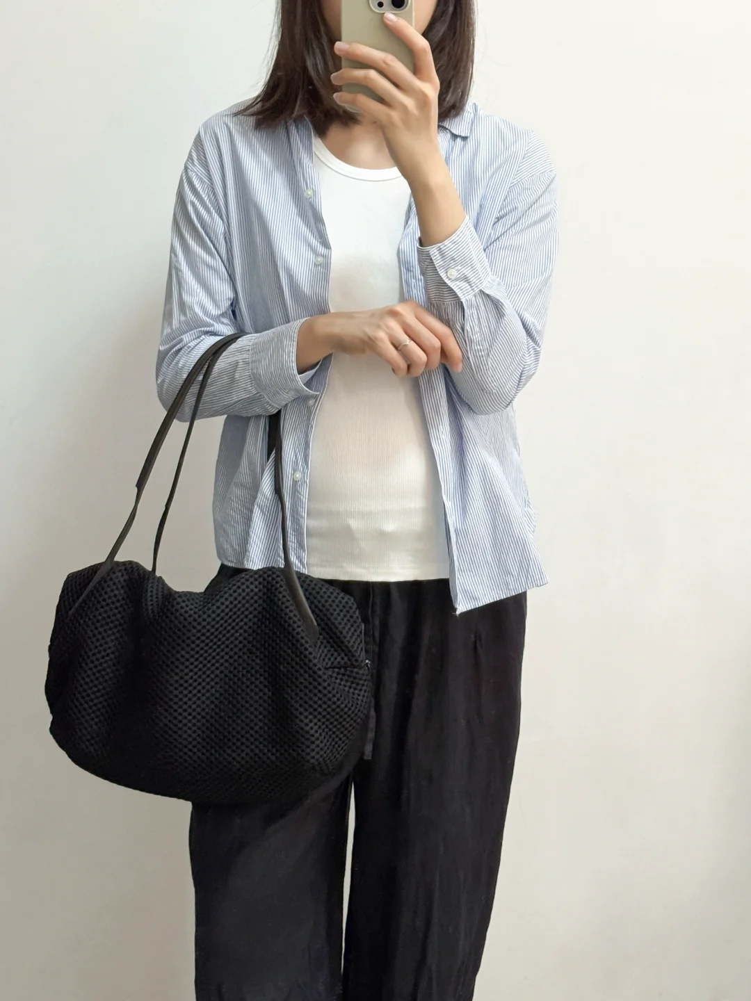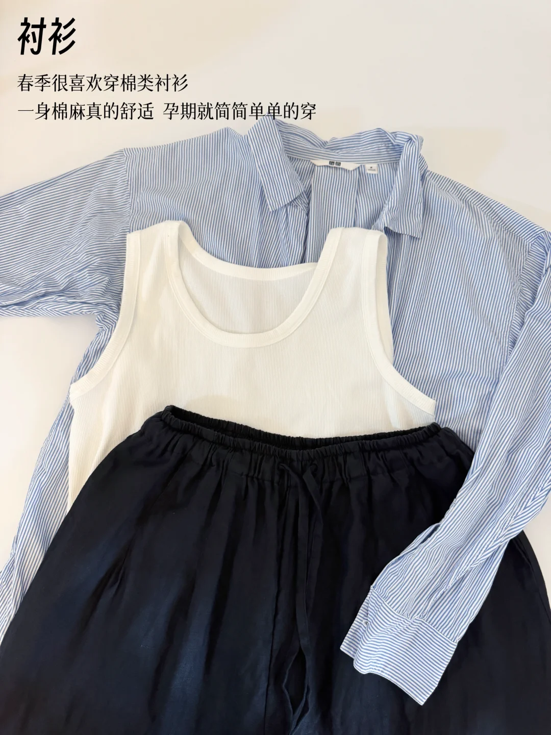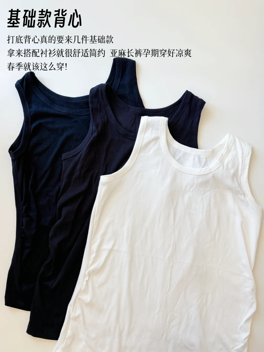 孕前的基础款背心不合适,入了黑白色系宽松基础款背心,跟衬衫百搭