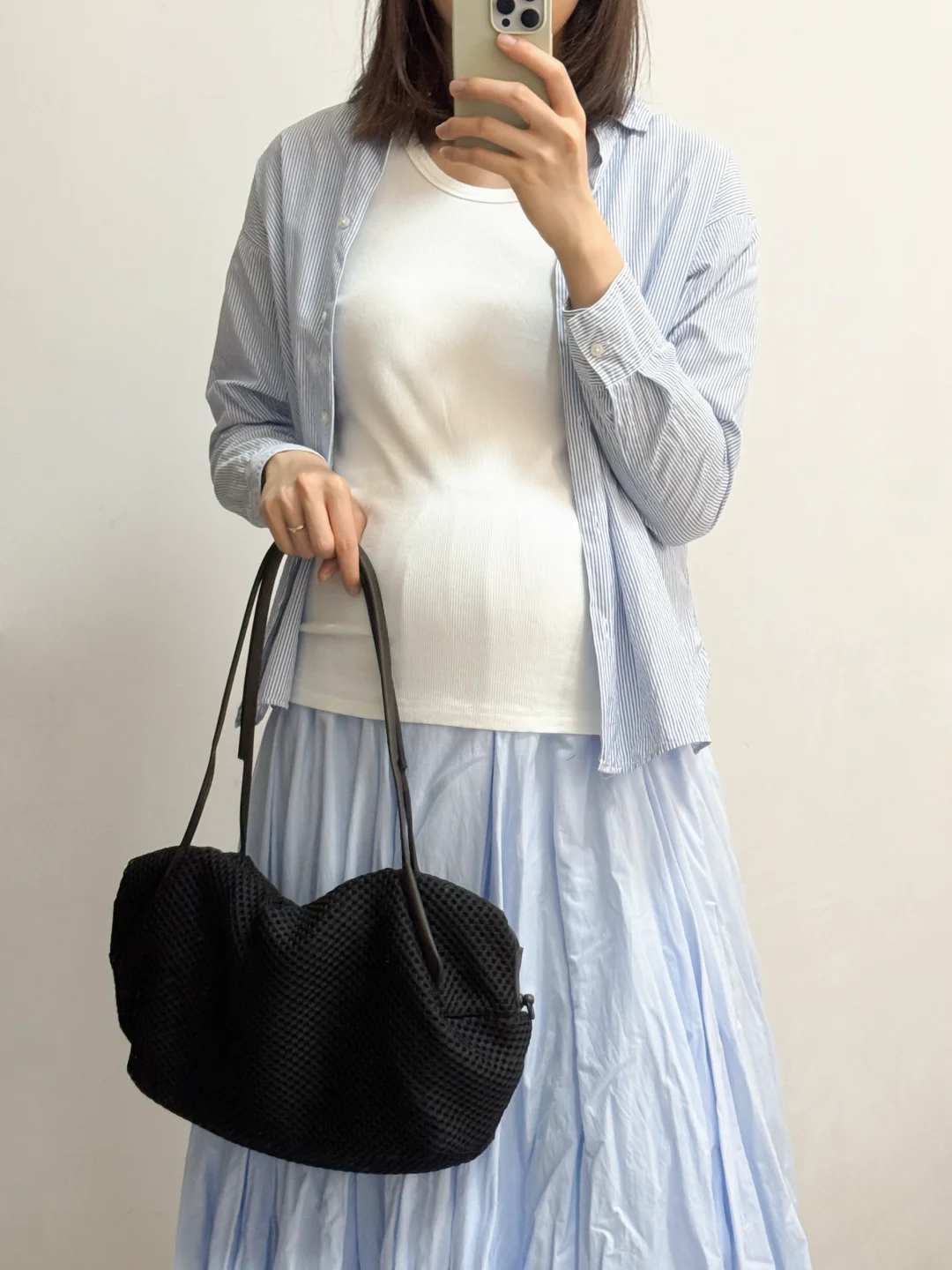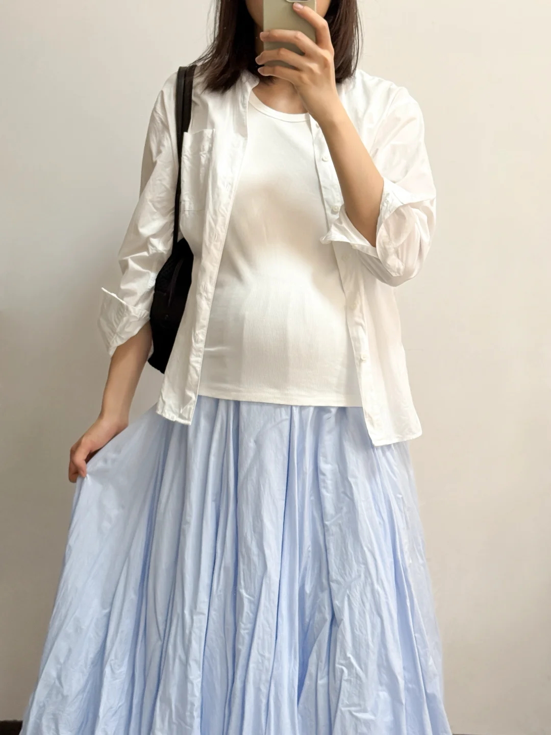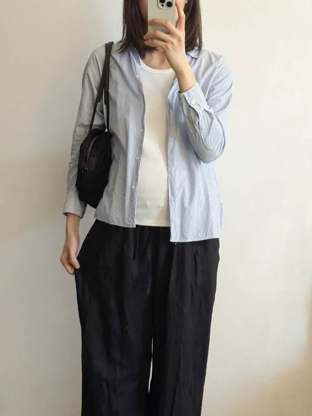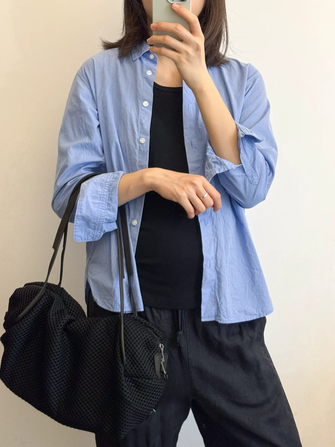 孕前的基础款背心不合适,入了黑白色系宽松基础款背心,跟衬衫百搭