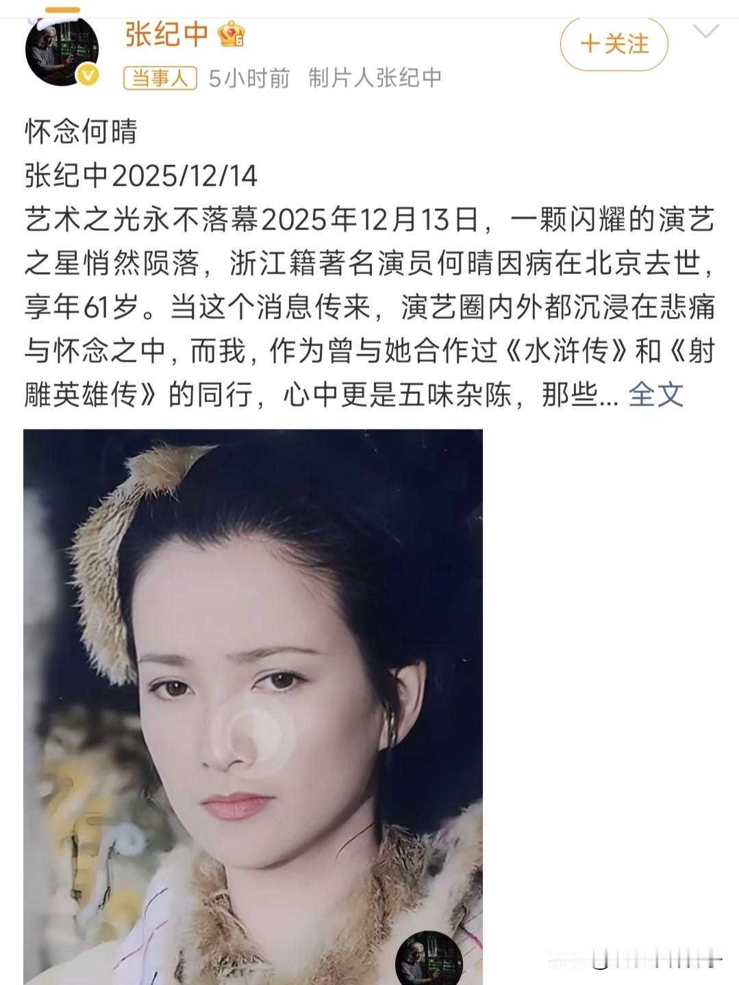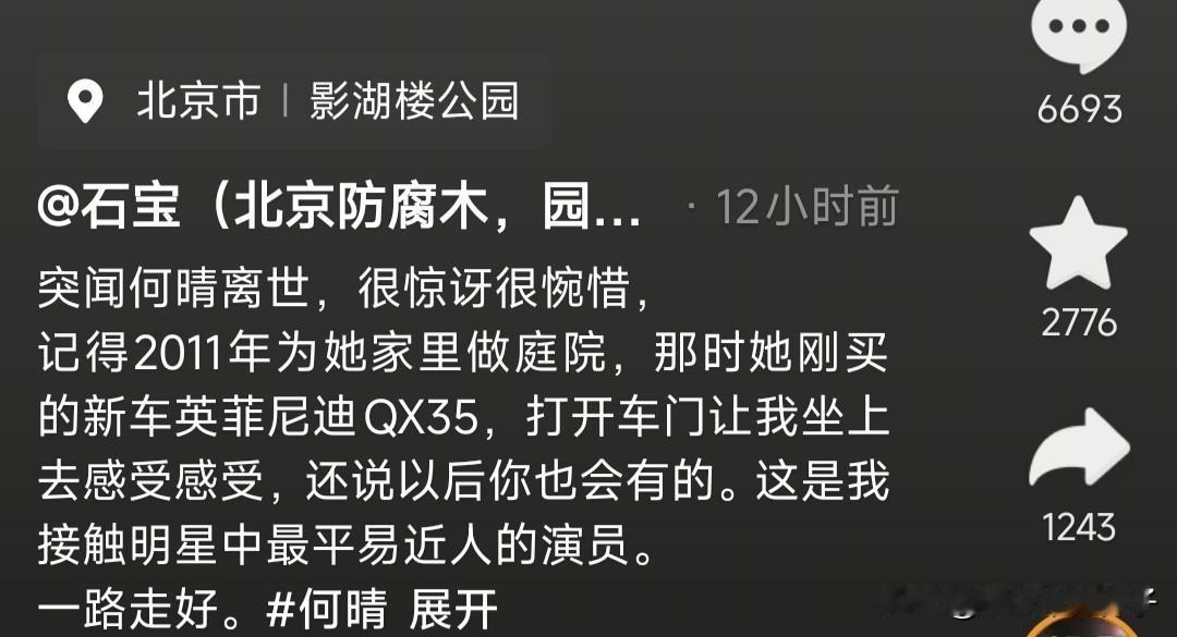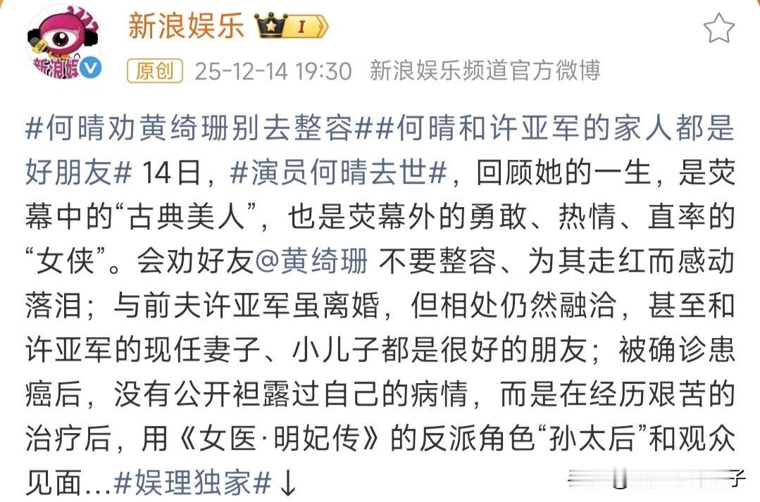 一位网友发文悼念何晴,并晒出一张合影,夸赞其平易近人! 12月14日,一位网友发