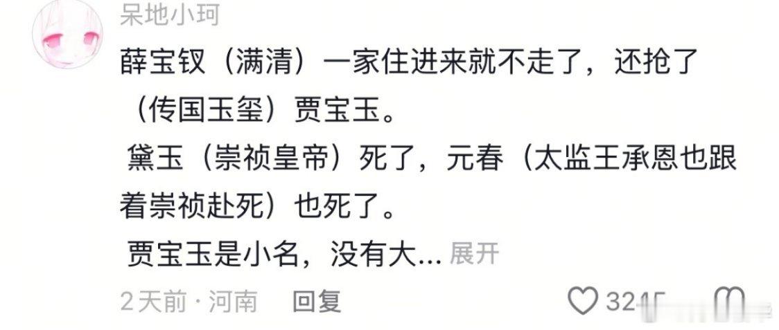 贾宝玉是玉玺,薛宝钗是满清,元春是王承恩,那元春给贾宝玉和薛宝钗赐同等礼物,把林黛玉凉一边算啥??是……王承恩偷了玉玺给了满清,还瞒着崇祯??王承恩都要气活了,看点书吧。